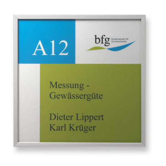 • Türschild mit Alu-Klapprahmen