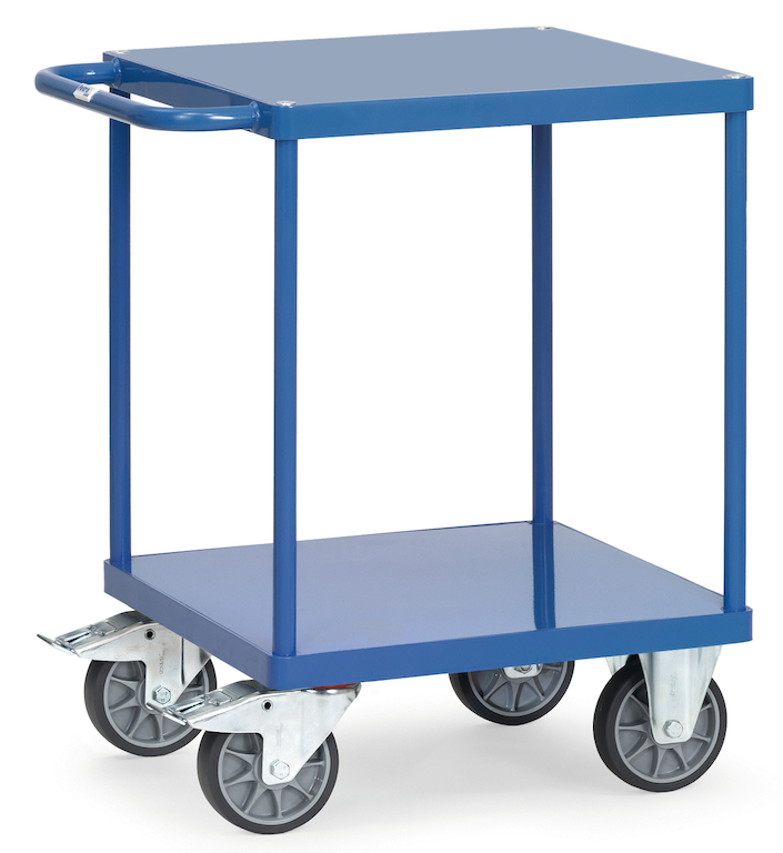 Schwerer und stabiler Tischwagen im multifunktionalen Bauskastensystem mit dem bewährten Fetra Steck- und Schraubprinzip. Rahmen und Stützrohre bestehen aus Stahlrohr und Profilstahl mit hochwertiger Pulverbeschichtung. Durch die Rahmenkonstruktion aus einem Guß mit runden Ecken wirkt der Wagen elegant. Die Verbindung von Rahmen und Stützrohren ist formschön und absolut sicher. Die quadratische Ladeflächen bestehen aus pulverbeschichteten und öldicht verschweißten Stahlblechwannen mit 10 cm hohem Rand.