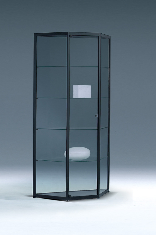 Der Rahmen der Vitrine besteht aus Aluminiumprofil.