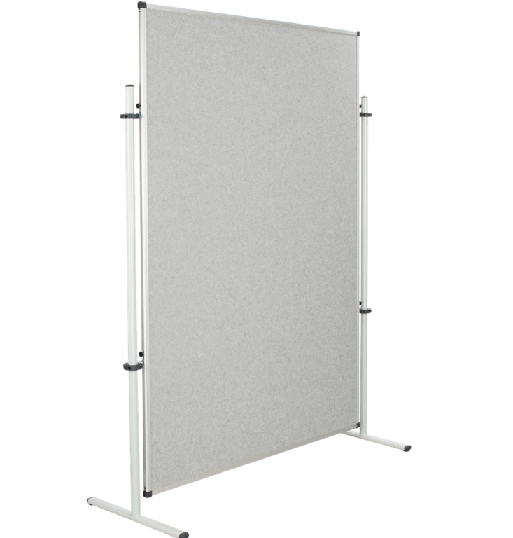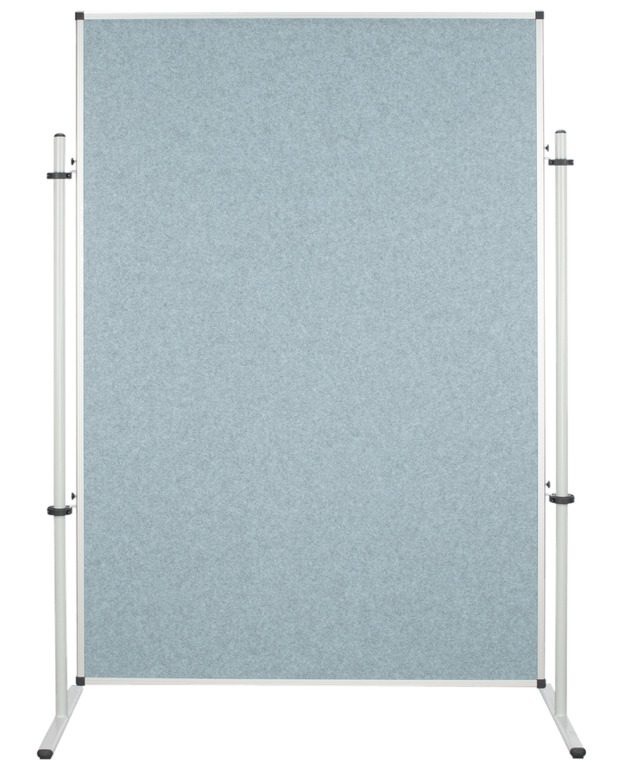 Das Stellwandelment ist in verschiedenen Größen und Stofffarben erhältlich und bepinnbar. Die Pinnwand ist mit einem Akustikstoff überzogen und in einem Aluminiumrahmen eingefasst. An allen vier Ecken befinden sich abgerundete Sicherheitseckkappen. Das Stellwandsystem ist kompatibel mit unseren T-Fuß- & Tellerfußstativen. Außerdem kann das Element sowohl horizontal als auch vertikal genutzt werden.