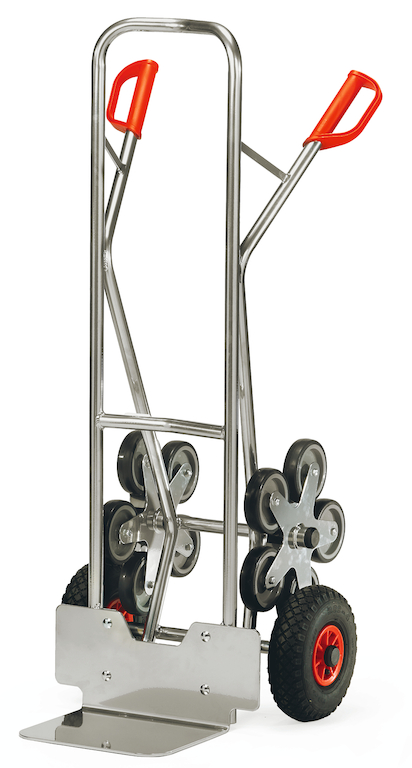 Der Treppenkarren ist vorzugsweise zur Verwendung bei häufigen Fahrten auf schlechten Bodenverhältnissen im ebenen Bereich mit gelegentlichen Treppenfahrten geeignet.