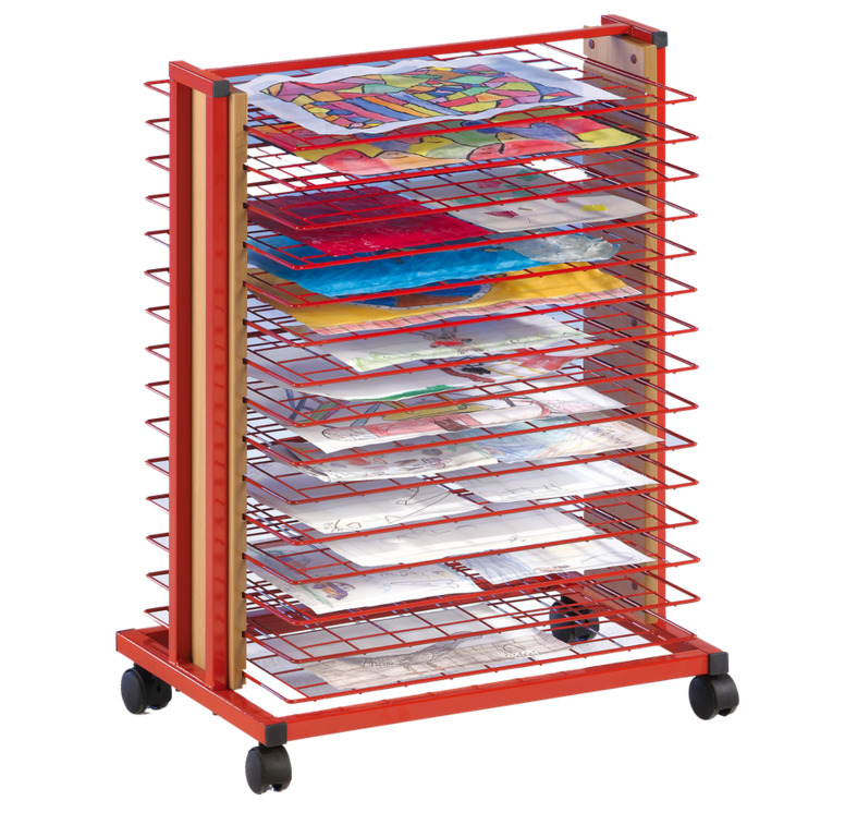 Unser Trockenwagen ist der perfekte Helfer in Ihrem Kunstraum. Jedes Kind kann sein Bild in diesem praktischen Trockenwagen aufbewahren und trocknen lassen. Er ist aus pulverbeschichtetem Stahl gefertigt und ist somit kratz und schlagfest.