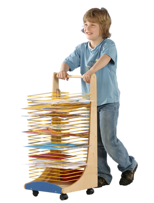 Unser Trockenwagen ist der perfekte Helfer in Ihrem Kunstraum. Jedes Kind kann sein Bild in diesem praktischen Trockenwagen aufbewahren und trocknen lassen. Er ist aus Birkenschichtholz gefertigt und dadurch sehr stabil.