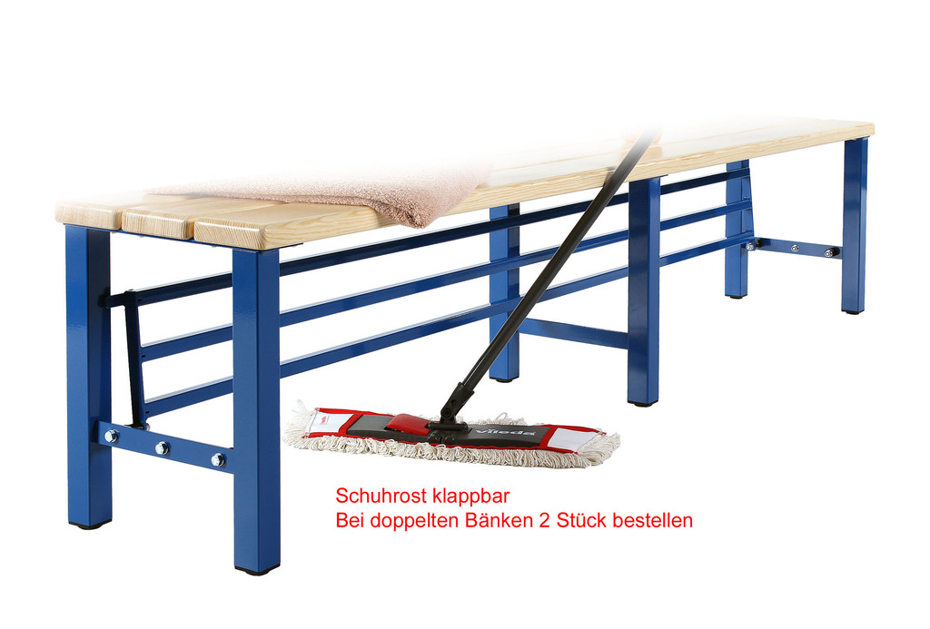 Optional können Sie Ihre neue "SB"-Umkleidebank mit einem Schuhrost in fester oder klappbarer Ausführung ausstatten.