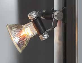 Halogenstrahler | 20 W, Anzahl der Strahler abhängig vom Vitrinenmodell (2, 3, 4 oder 5 Strahler) Die Strahler sind stufenlos verstellbar und einstellbar |