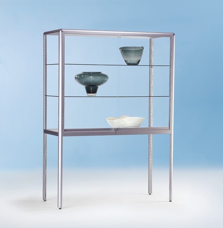 | 1800 x 1500 x 500 mm | 1080 mm | Glasvitrine mit 3 Glasfachböden und Schiebetüren mit Zylinderschloss, freie Gestellbeine |