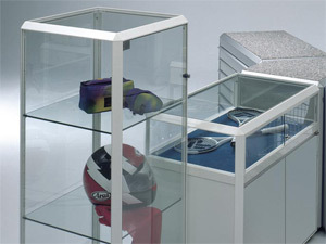 Der Rahmen der Vitrine besteht aus Aluminiumprofil.