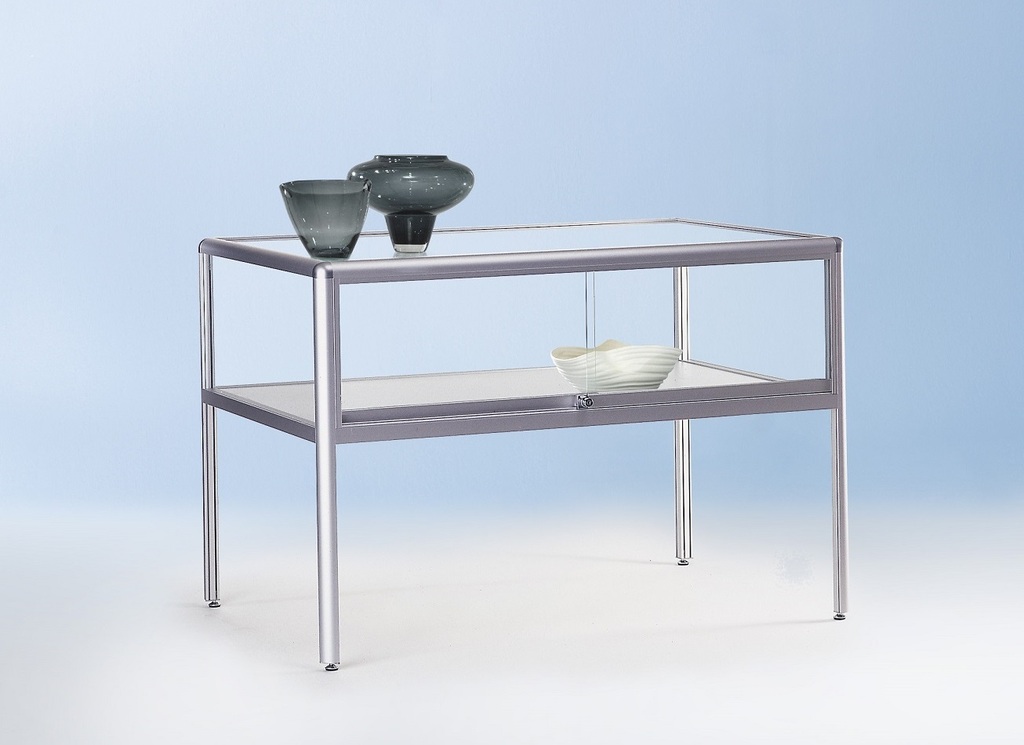 Der Rahmen der Vitrine besteht aus Aluminiumprofil.