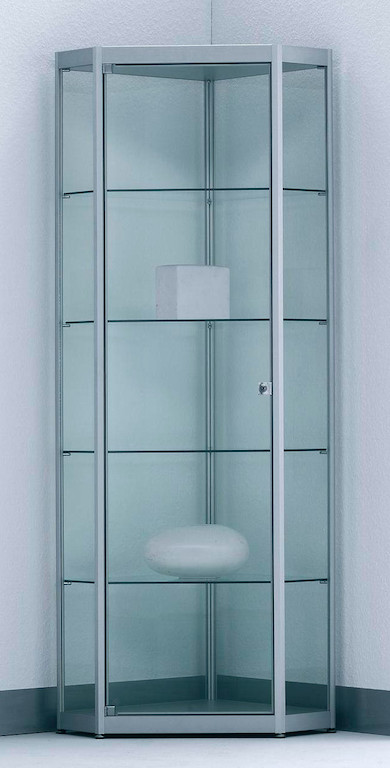 silber eloxiert. Gegen Mehrpreis auch verchromt, im Edelstahlfinish oder RAL-farbbeschichtet erhältlich - Mit 4 höhenverstellbaren Dickglasböden auf Metallfachbodenträgern - auf Wunsch auch durch weitere Böden ergänzbar