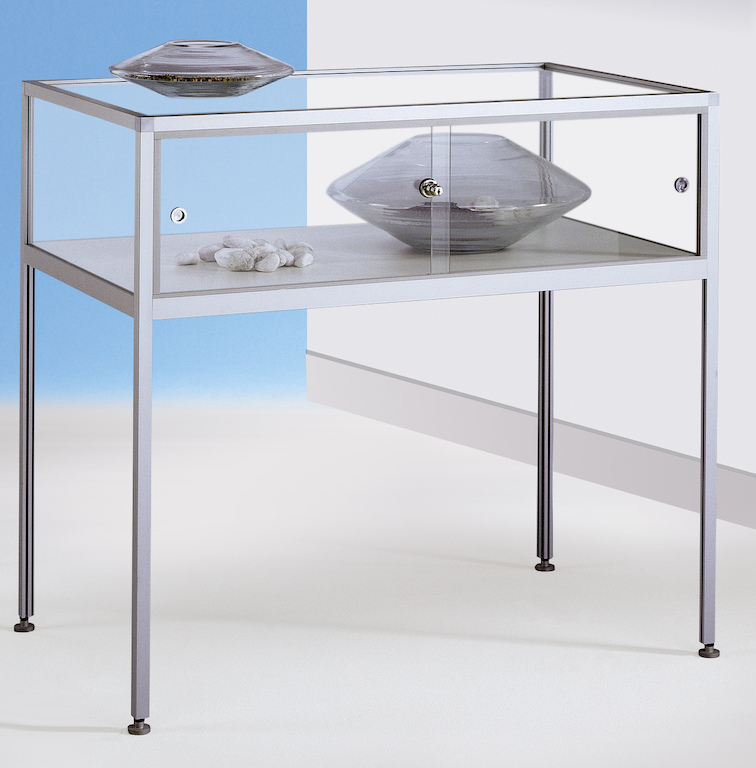 | 1000 x 1000 x 600 mm | 250 mm | Vitrinenoberteil mit Schiebetür mit Zylinderschloss / freie Gestellbeine |