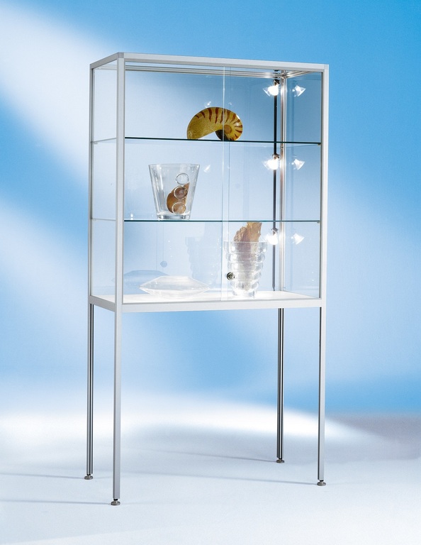 Mit der Hochbeinvitrine NICE mit Schiebetüren aus der Vitrinenserie NICE stellen Sie Ihre Exponate wirkungsvoll zur Schau.