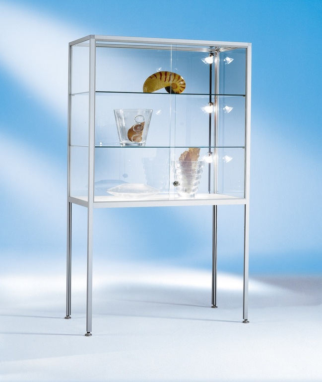 - 1210 mm hohe Glasvitrine auf 790 mm hohen Standbeinen