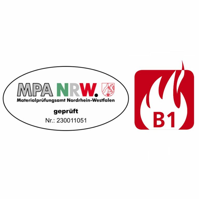 Unterschiedliche Bereiche und Räume stellen komplexe Anforderungen an den Brandschutz. Die Bauvorschriften verweisen dabei hinsichtlich des Brandschutzes auf die Einhaltung der DIN 4102-1. In dieser Norm ist das Brandverhalten von Baustoffen und Bauteilen geregelt. Da viele Möbel jedoch aus einem Materialmix bestehen, muss hier mit besonderer Sorgfalt hingeschaut werden. Die mit der Baustoffklasse B1 nach DIN 4102-1 gekennzeichneten schwer entflammbaren Produkte gewährleisten die für viele Raumsituationen geforderten Schutzmaßnahmen. Im Einzelfall stimmen Sie sich bitte mit den zuständigen Behörden und der für Sie zuständigen Bauaufsicht vor Ort ab.