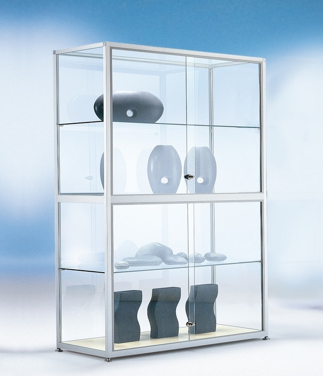 Der Rahmen der Vitrine besteht aus Aluminiumprofil.