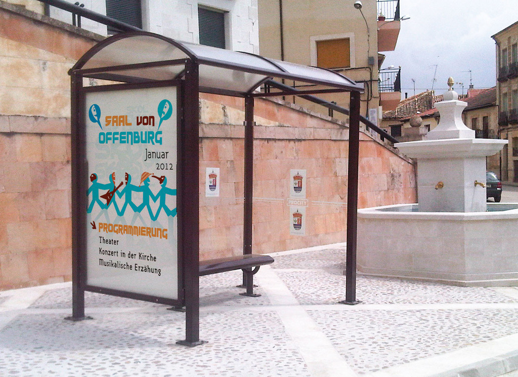 - Information und Werbung: Leuchtkasten (Größe der Anzeigefläche 1710 x 1160 mm) oder Schaukasten „ 2000 “ (Größe der Anzeigefläche 1710 x 1200 mm).