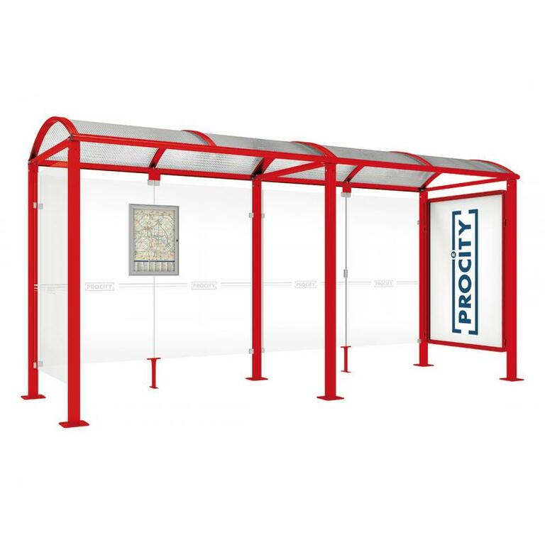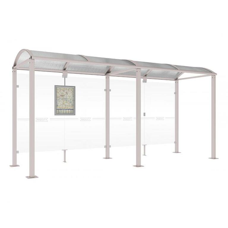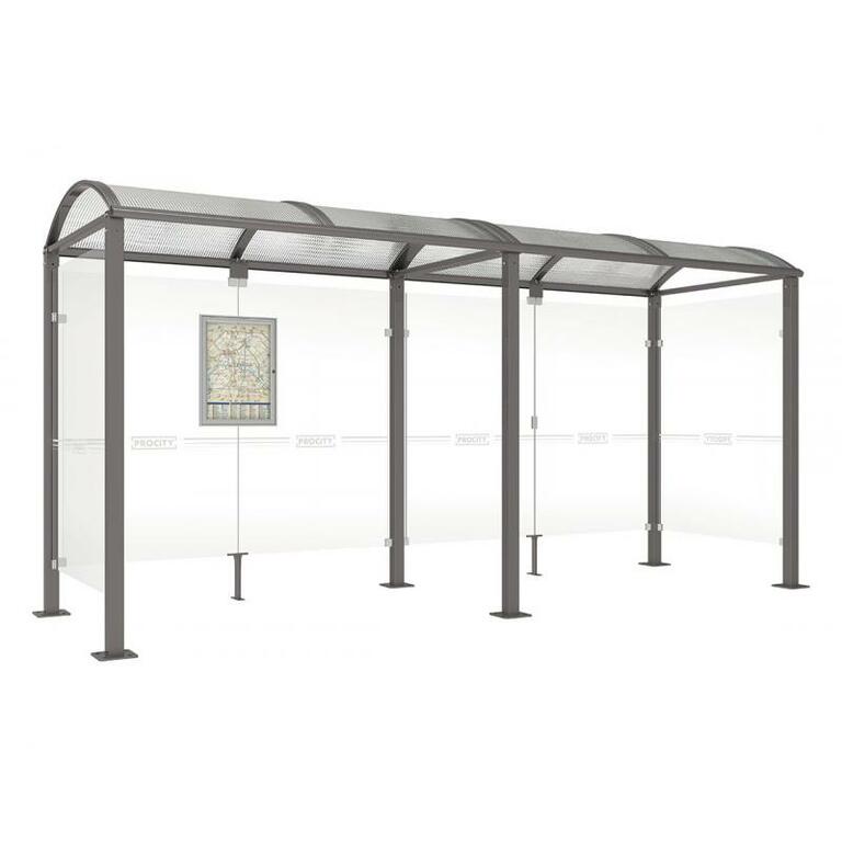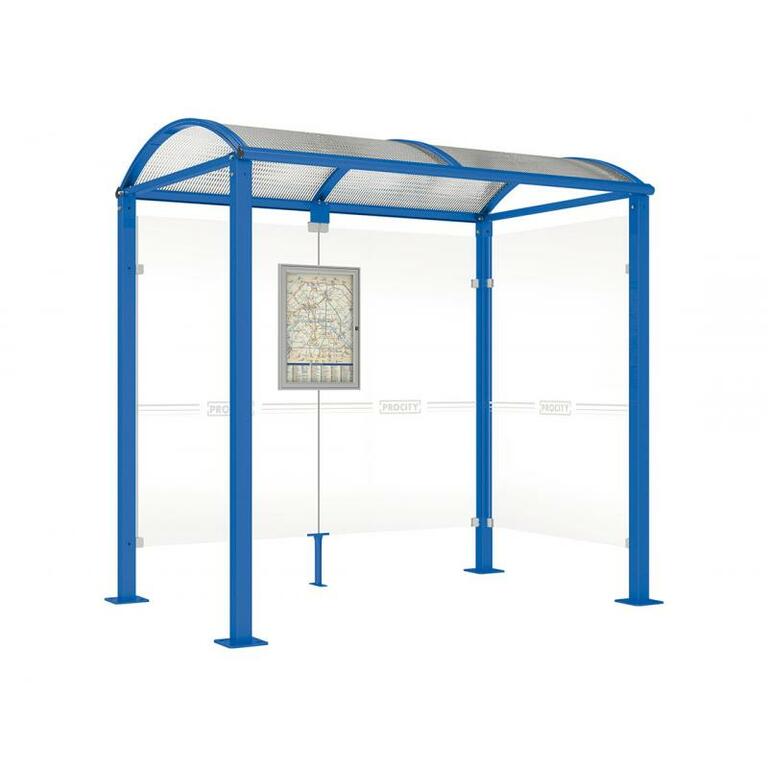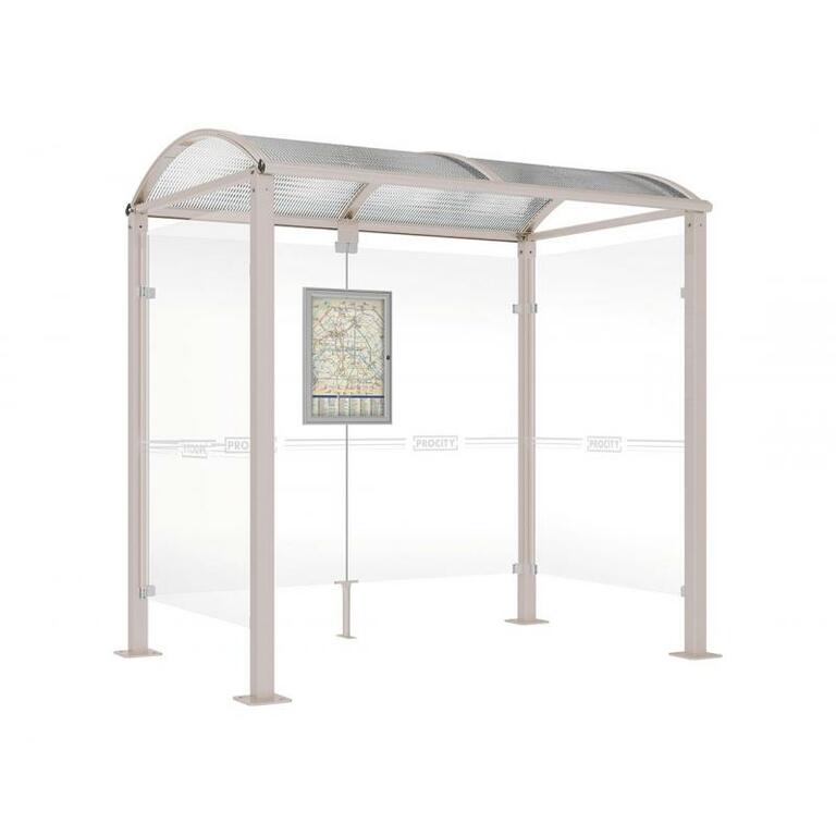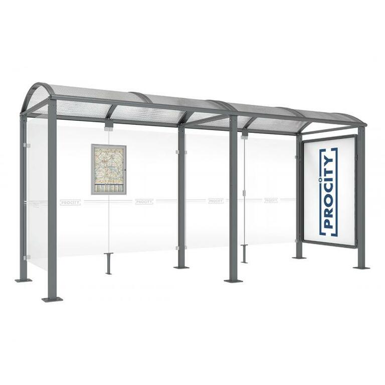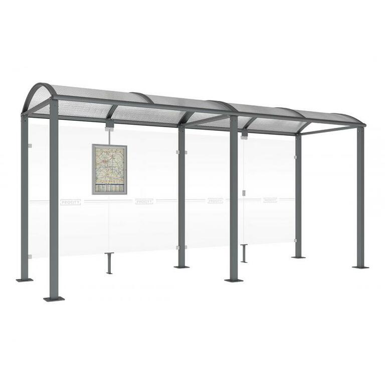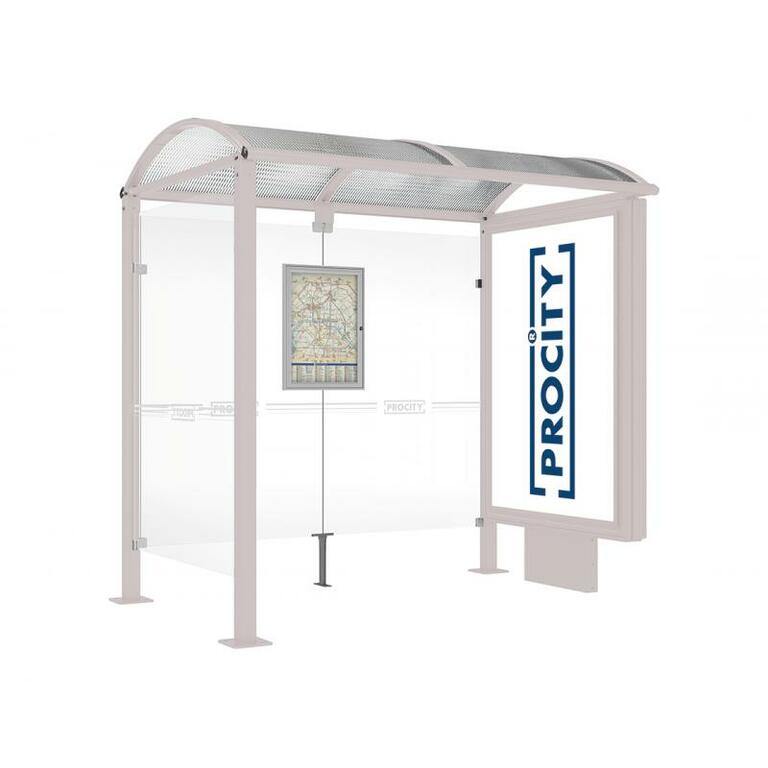 - Fahrplanschaukasten: 750 x 550 mm (4 A4), 30 mm tief, aus eloxiertem Aluminium.