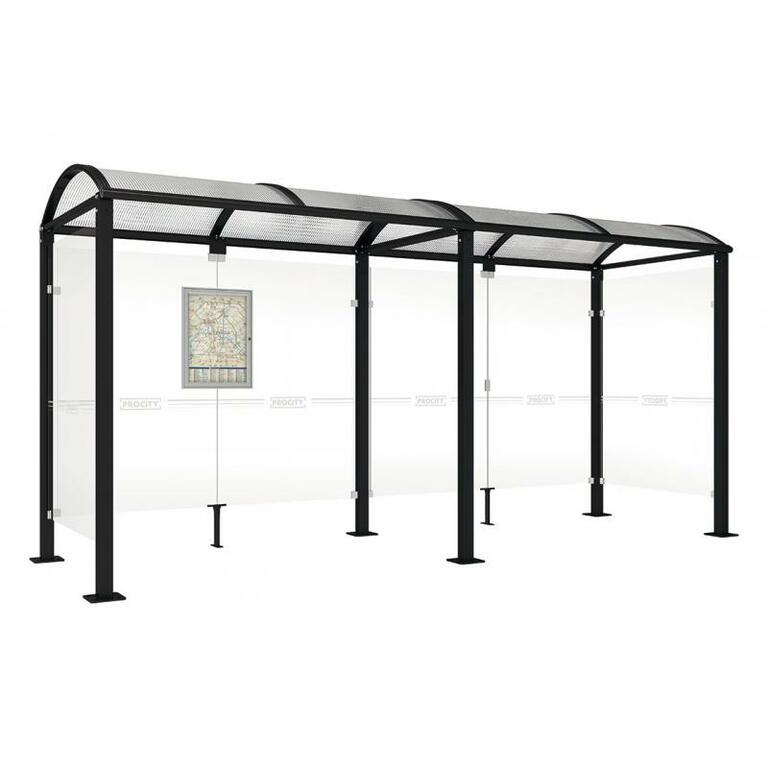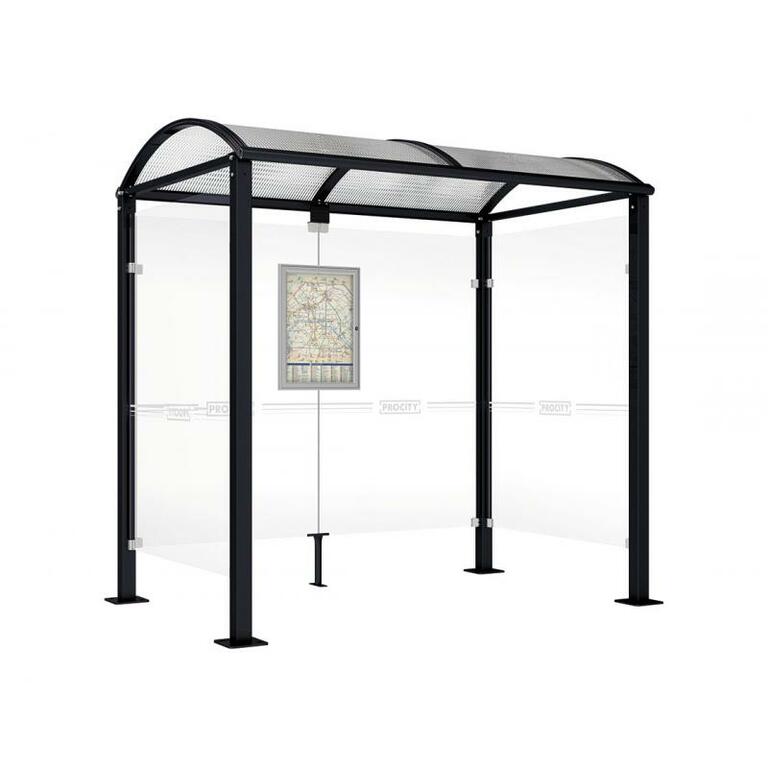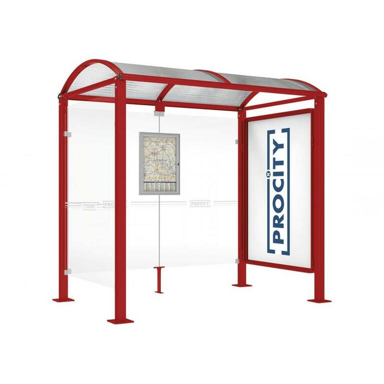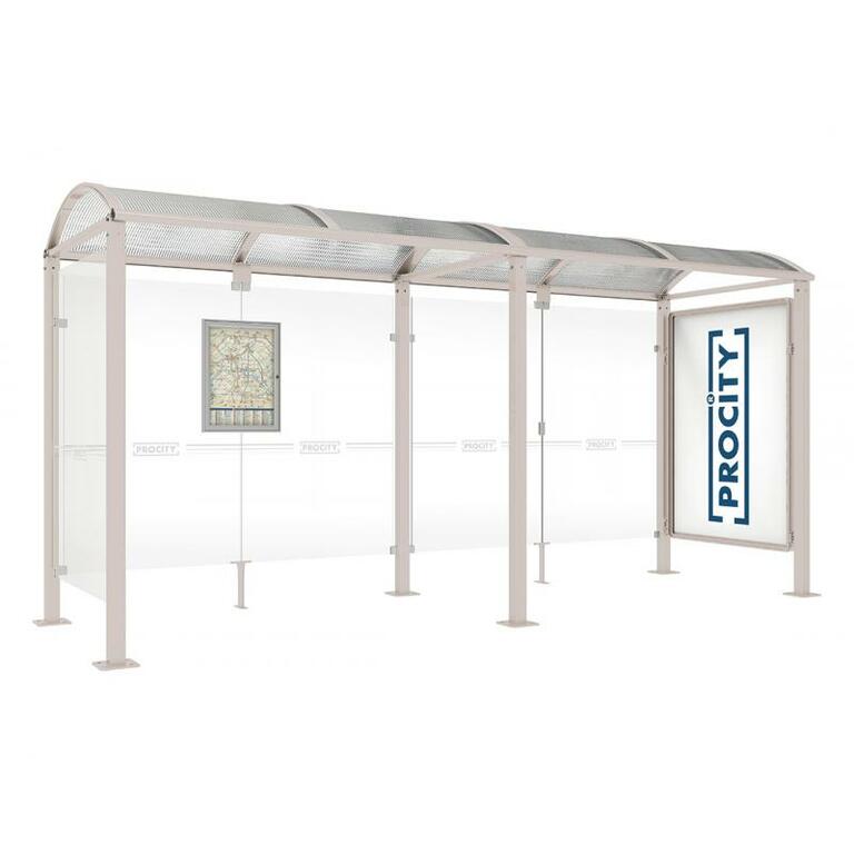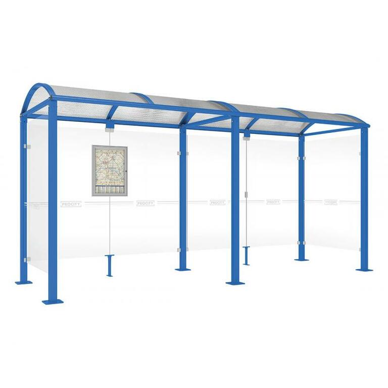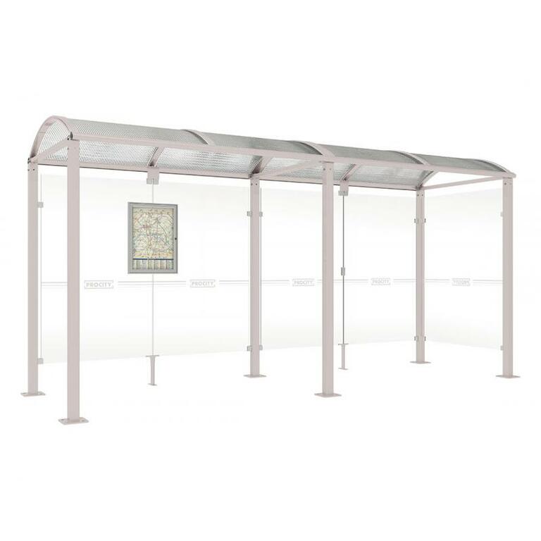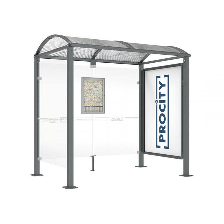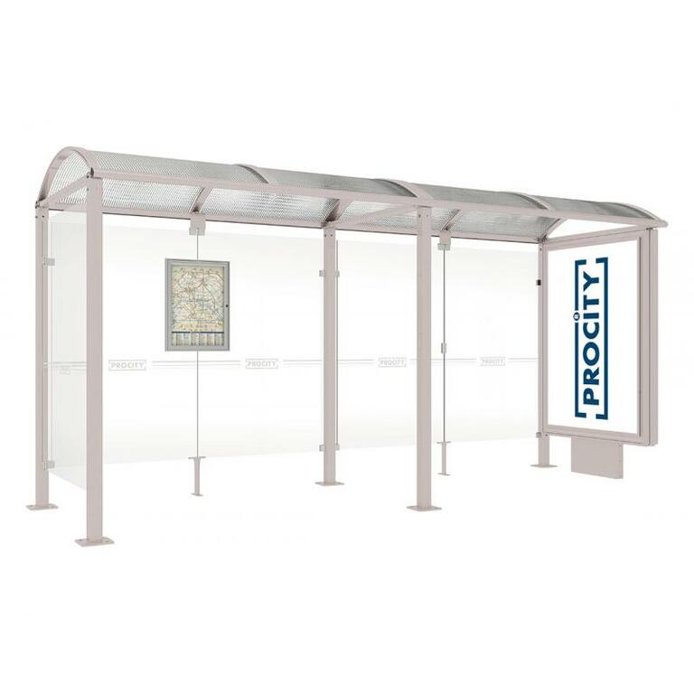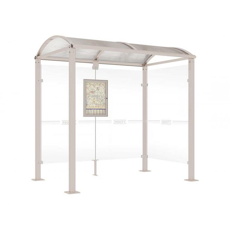 - Fahrplanschaukasten: 750 x 550 mm (4 A4), 30 mm tief, aus eloxiertem Aluminium.