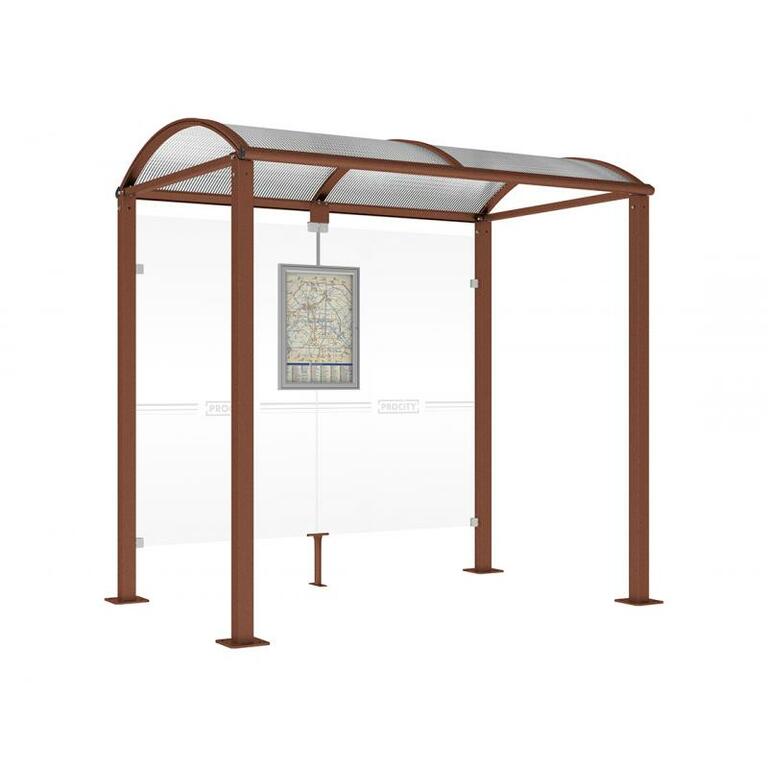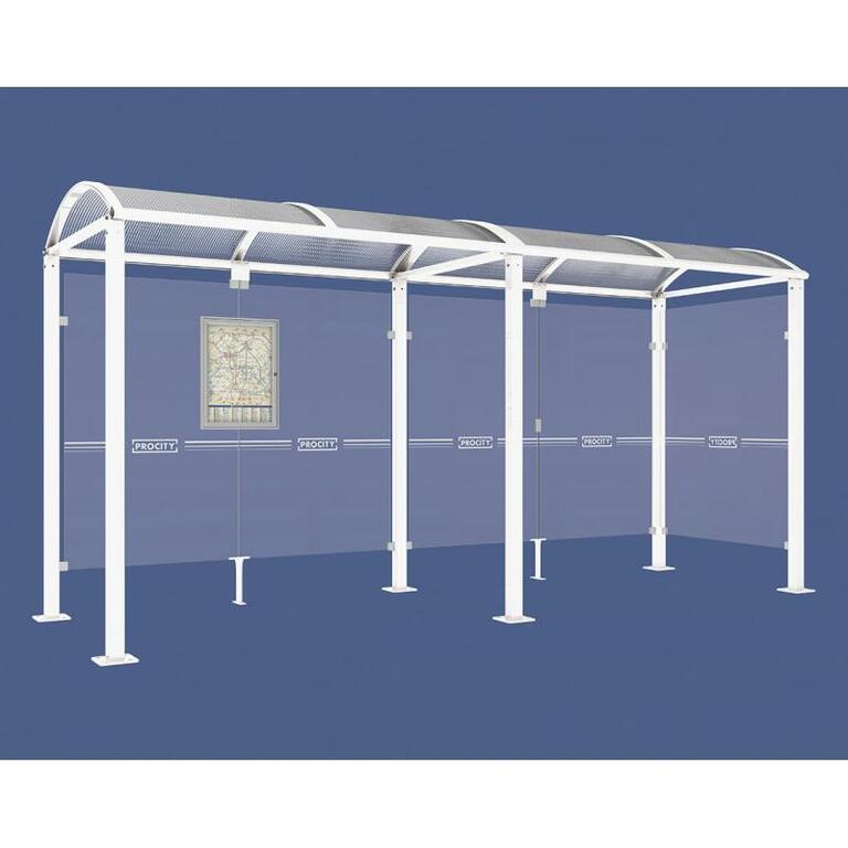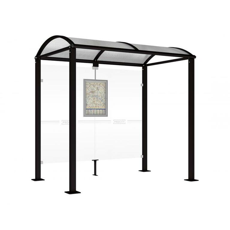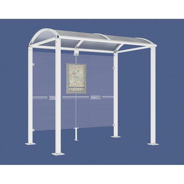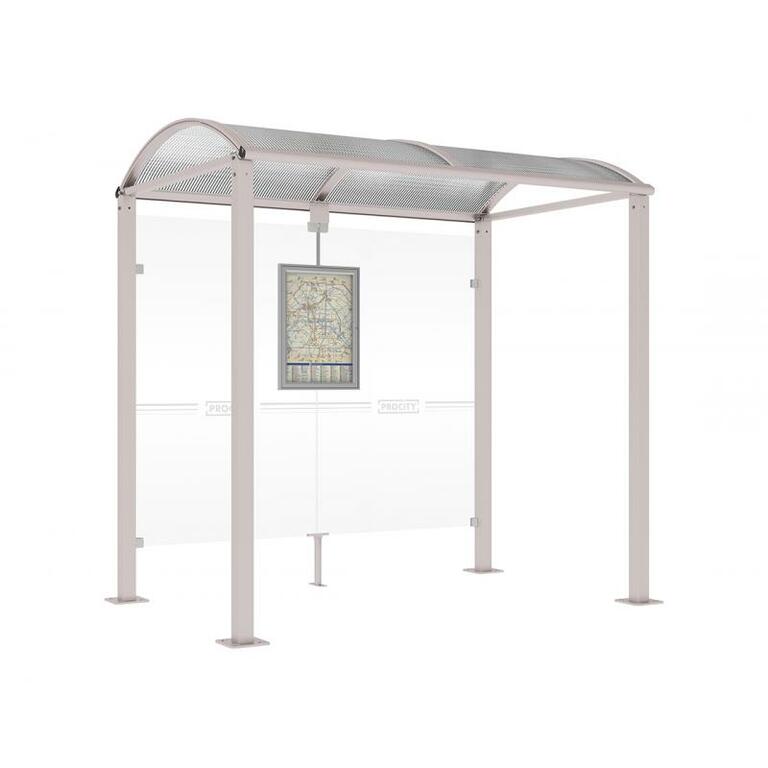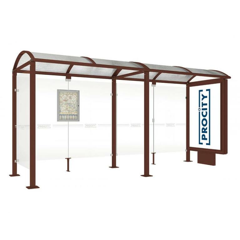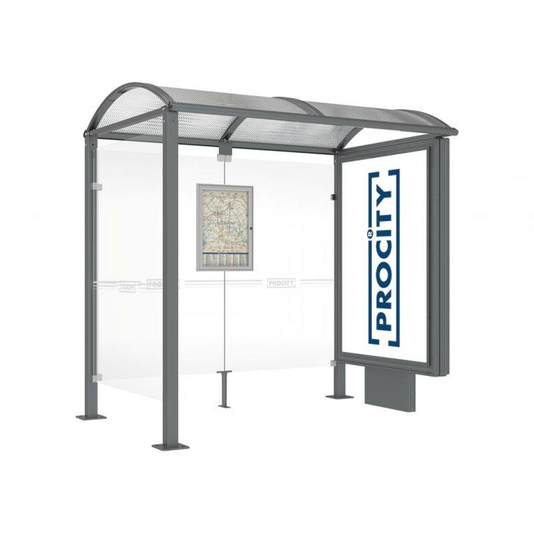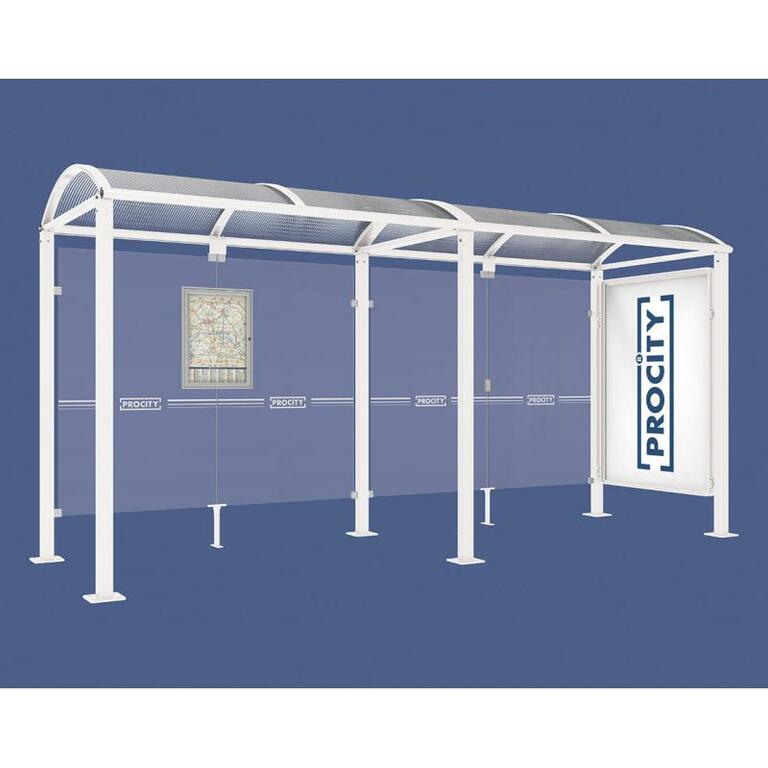 - Fahrplanschaukasten: 750 x 550 mm (4 A4), 30 mm tief, aus eloxiertem Aluminium.