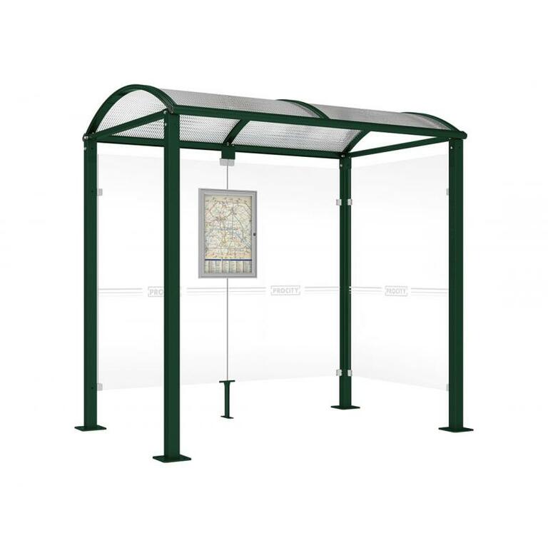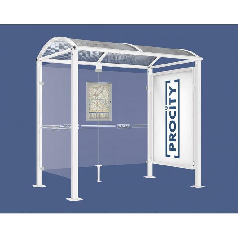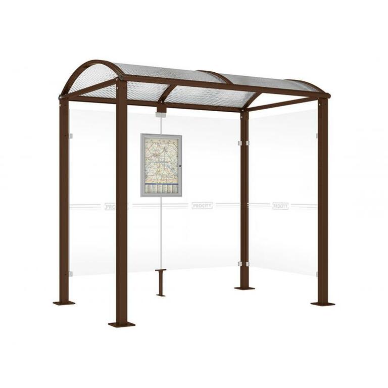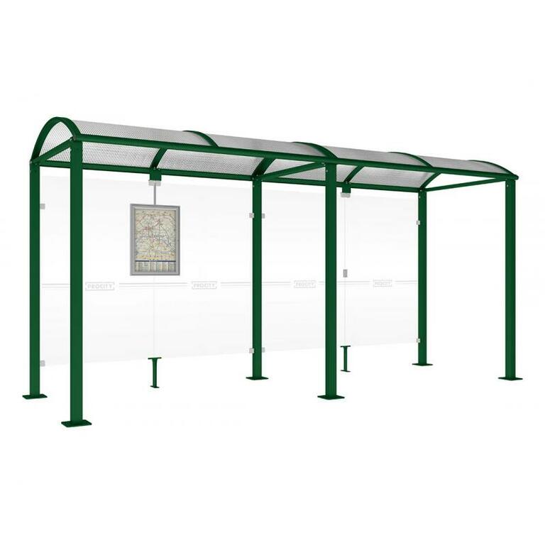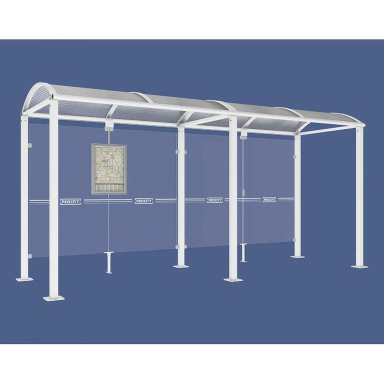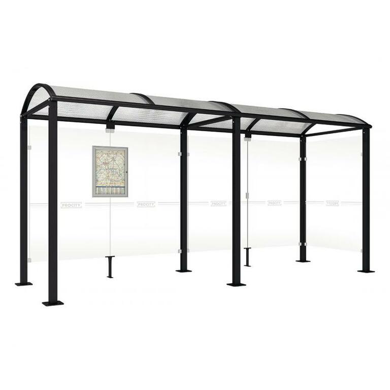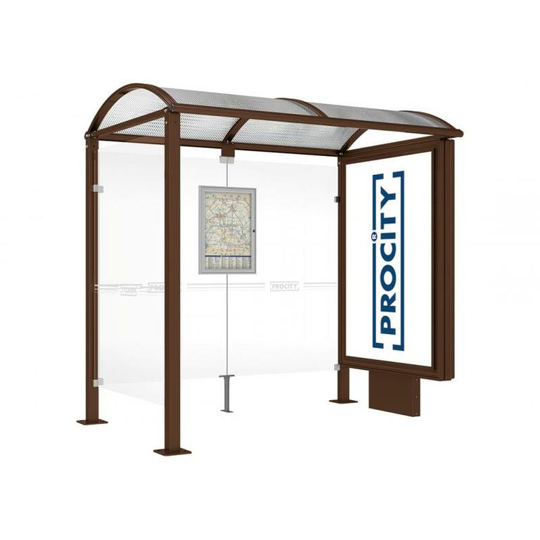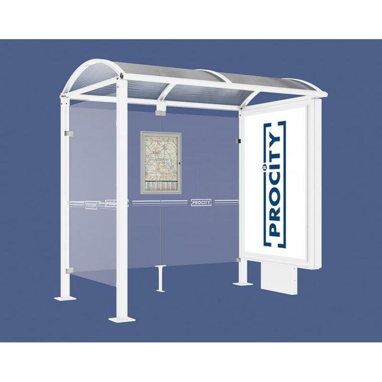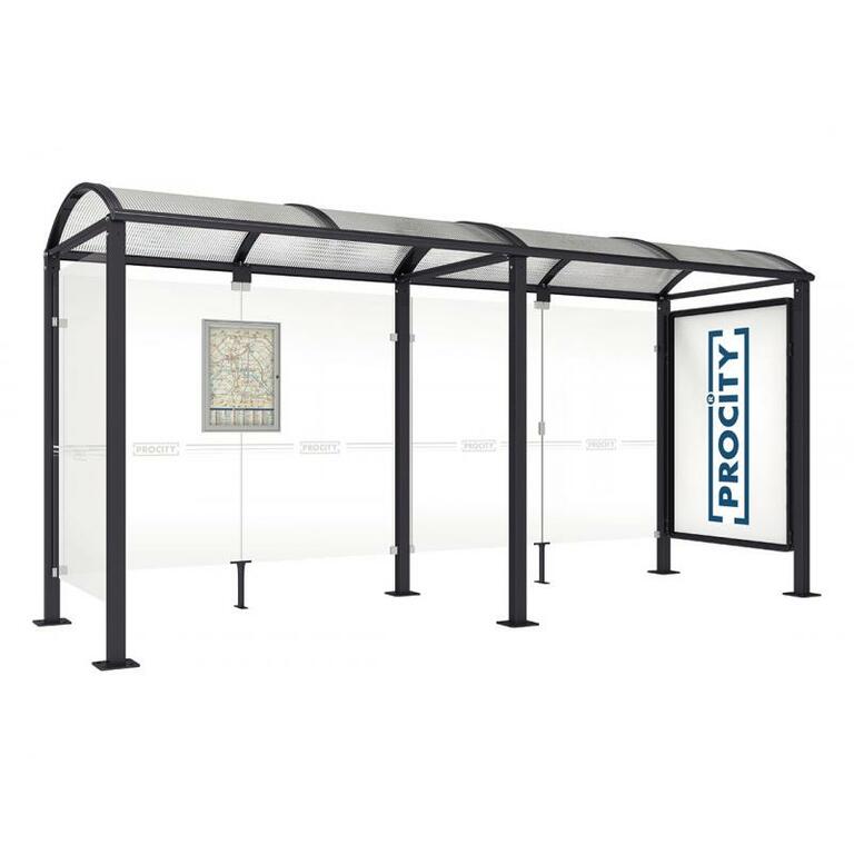 - Fahrplanschaukasten: 750 x 550 mm (4 A4), 30 mm tief, aus eloxiertem Aluminium.