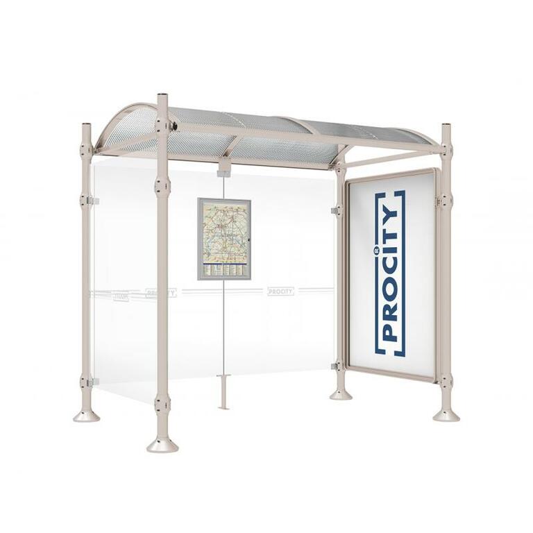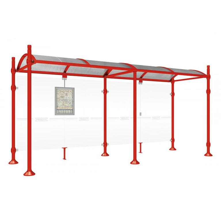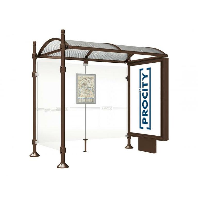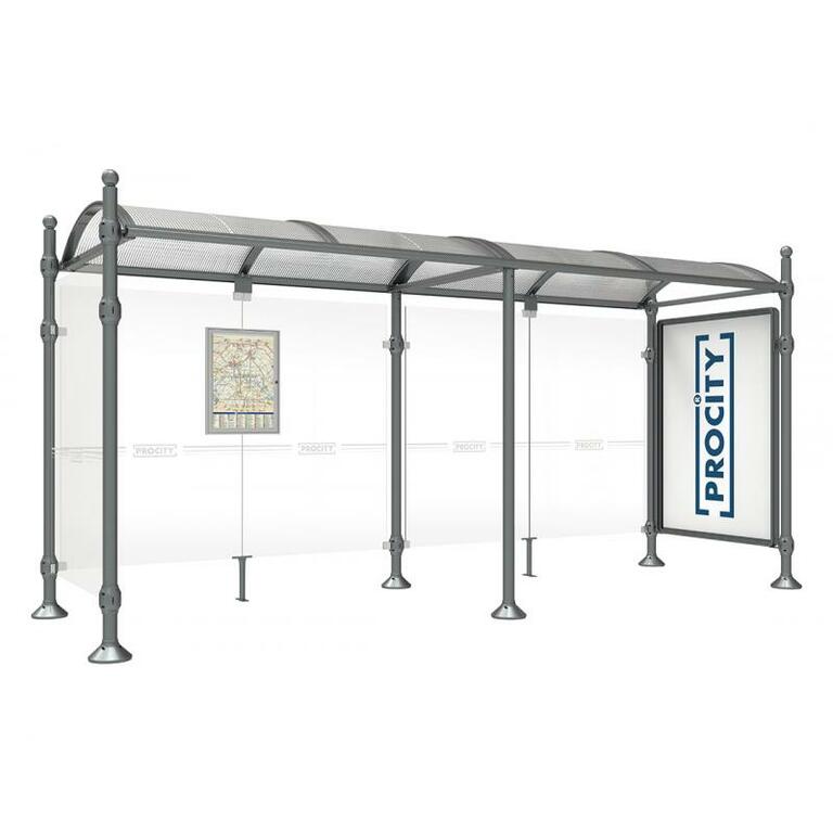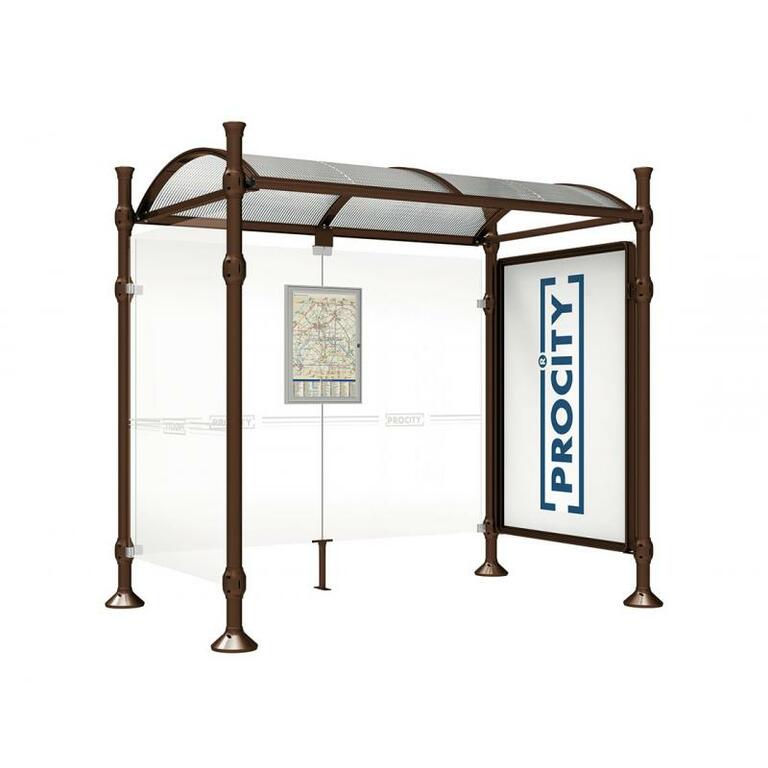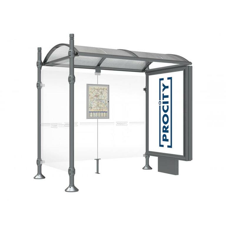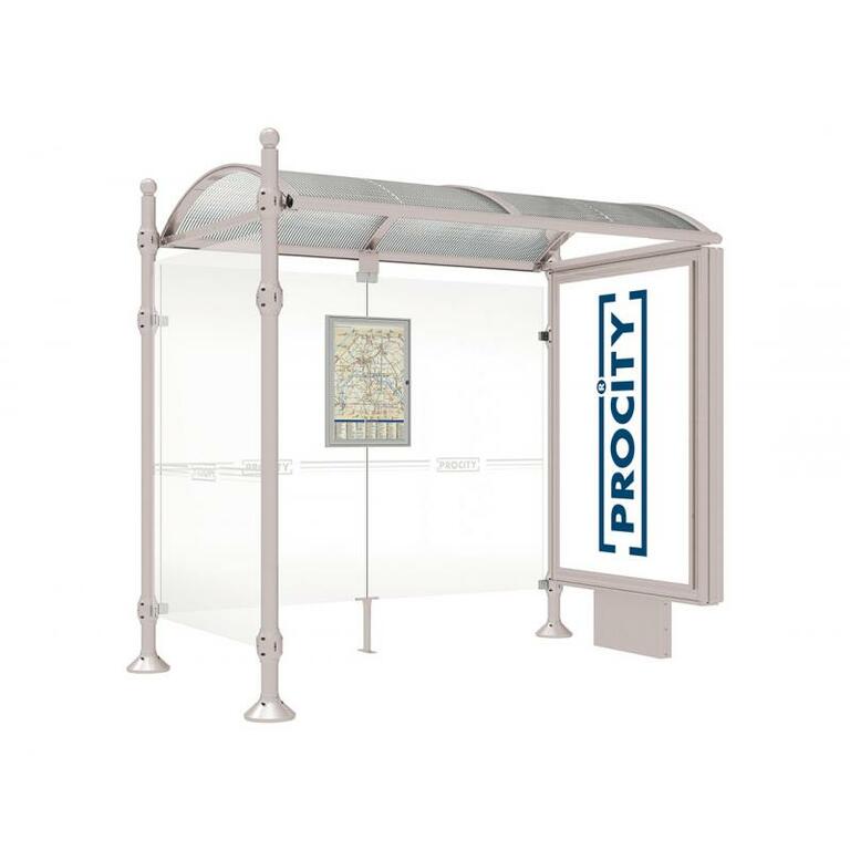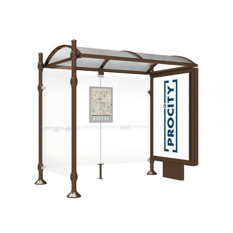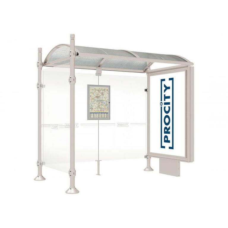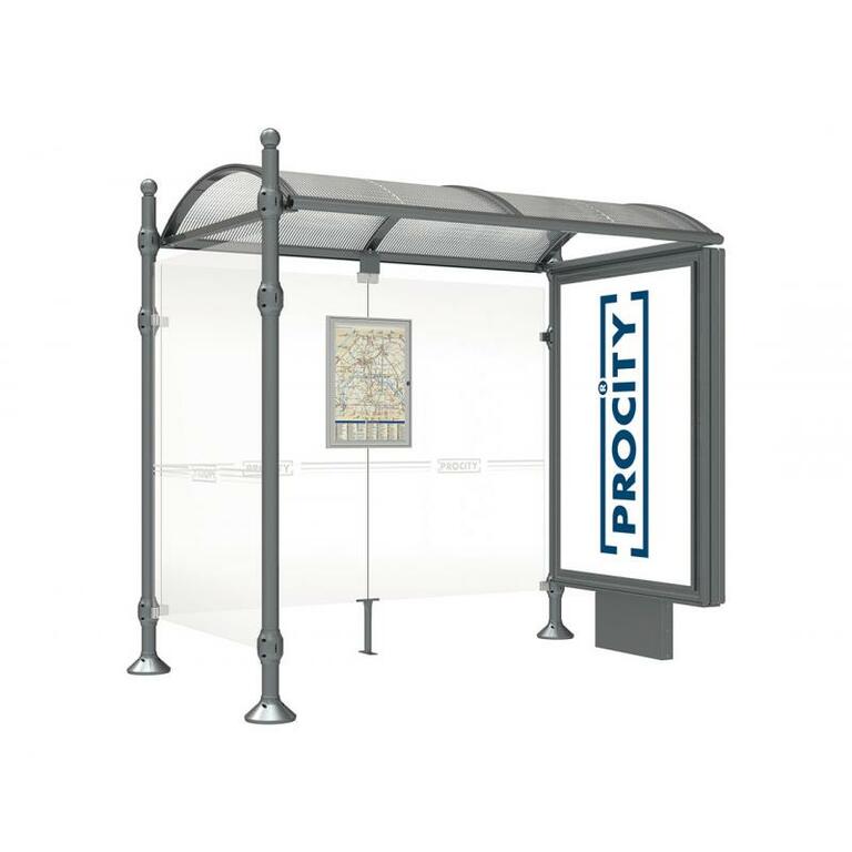 Die Bushaltestelle Province besticht durch ihre klare visuelle Identität, die sich durch vier Kopfmodelle sowie verschiedene Befestigungsschellen und Abdeckfüße auszeichnet. Sie bietet eine robuste Konstruktion aus Aluminium und Glas, mit einem gewölbten Polycarbonatdach und einer stabilen Rahmenstruktur. Die Haltestelle ist vielseitig anpassbar und bietet Platz für Fahrpläne sowie Werbung in einem Leuchtkasten oder einem Schaukasten.