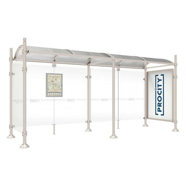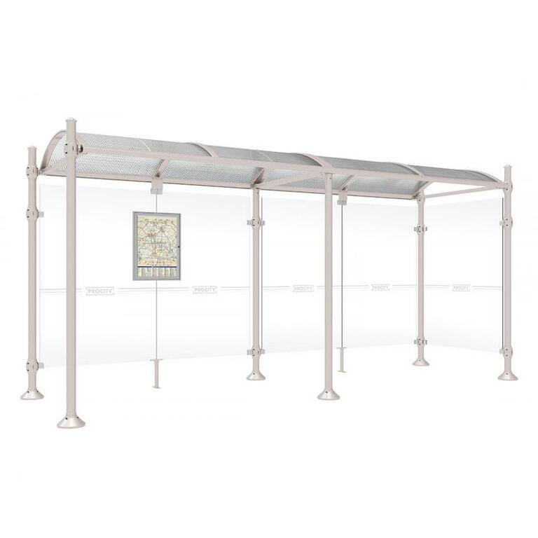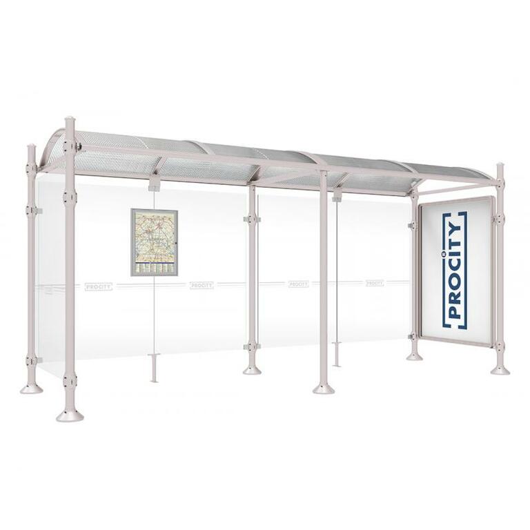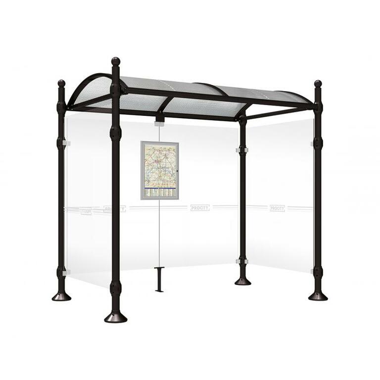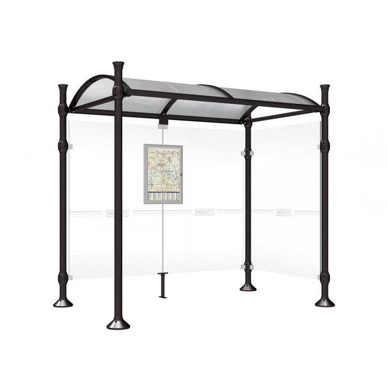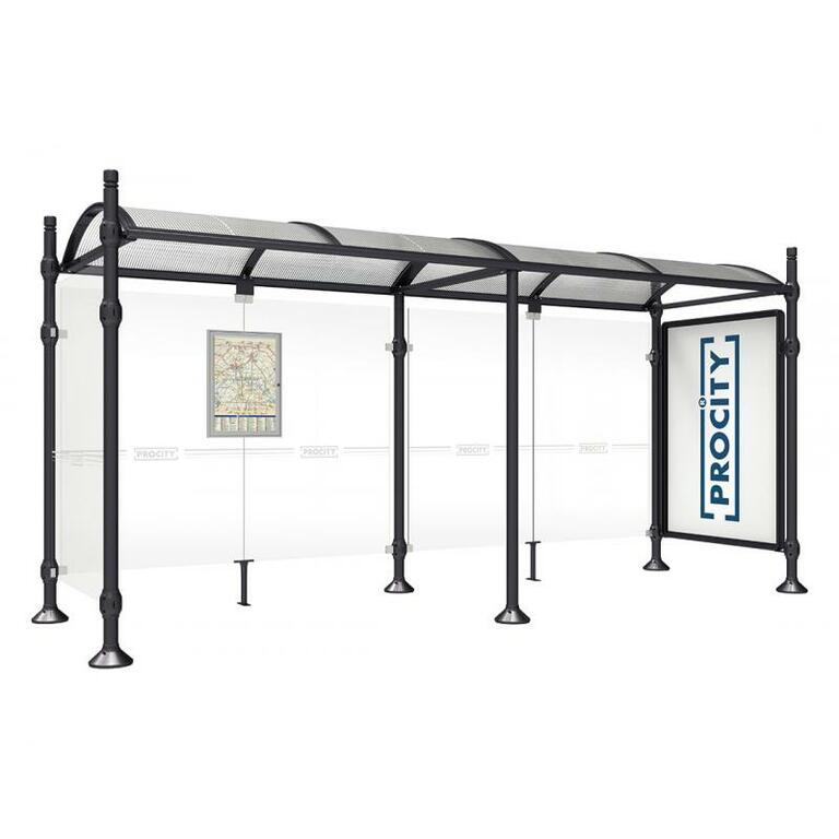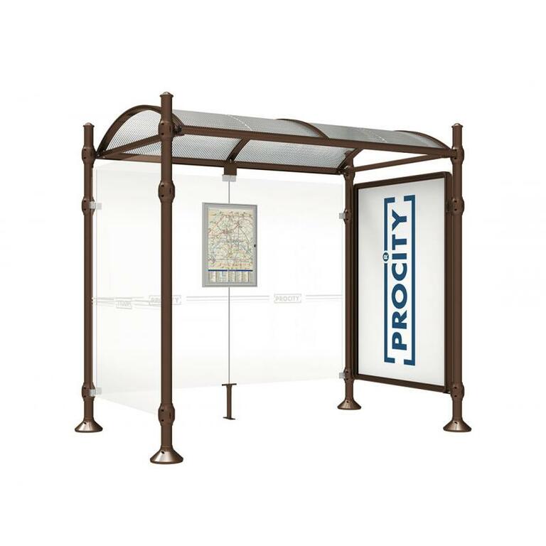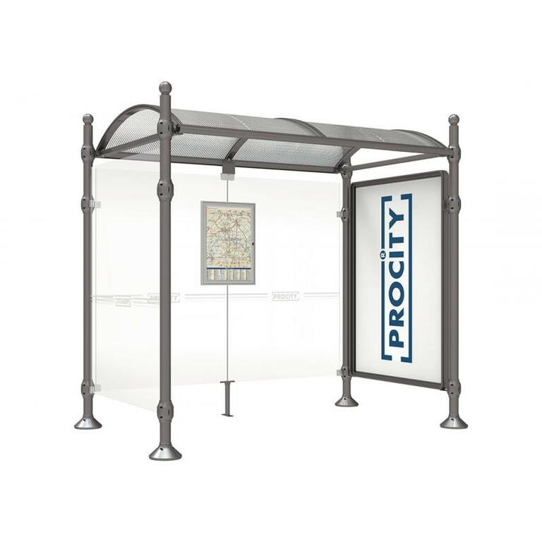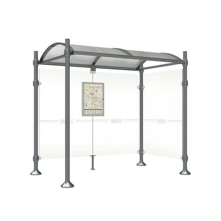 Die Bushaltestelle Province besticht durch ihre klare visuelle Identität, die sich durch vier Kopfmodelle sowie verschiedene Befestigungsschellen und Abdeckfüße auszeichnet. Sie bietet eine robuste Konstruktion aus Aluminium und Glas, mit einem gewölbten Polycarbonatdach und einer stabilen Rahmenstruktur. Die Haltestelle ist vielseitig anpassbar und bietet Platz für Fahrpläne sowie Werbung in einem Leuchtkasten oder einem Schaukasten.