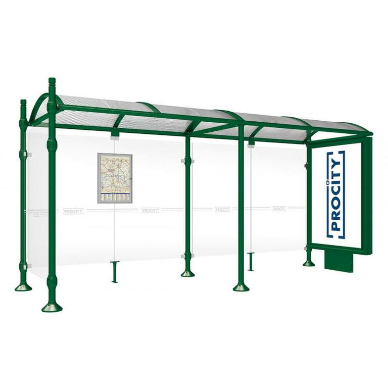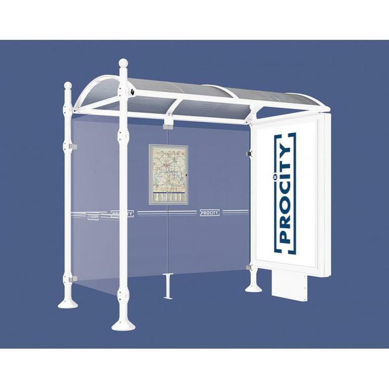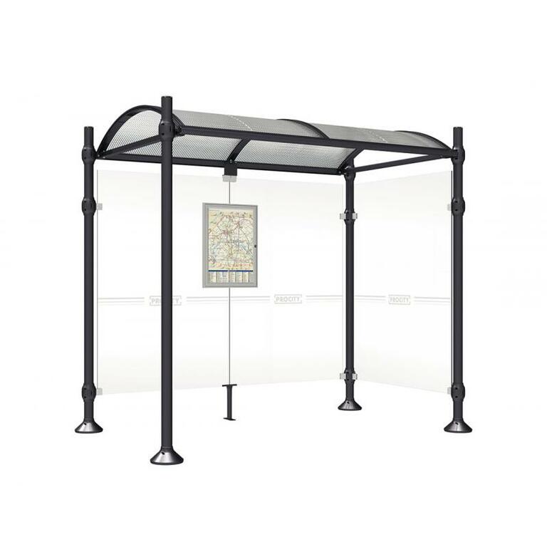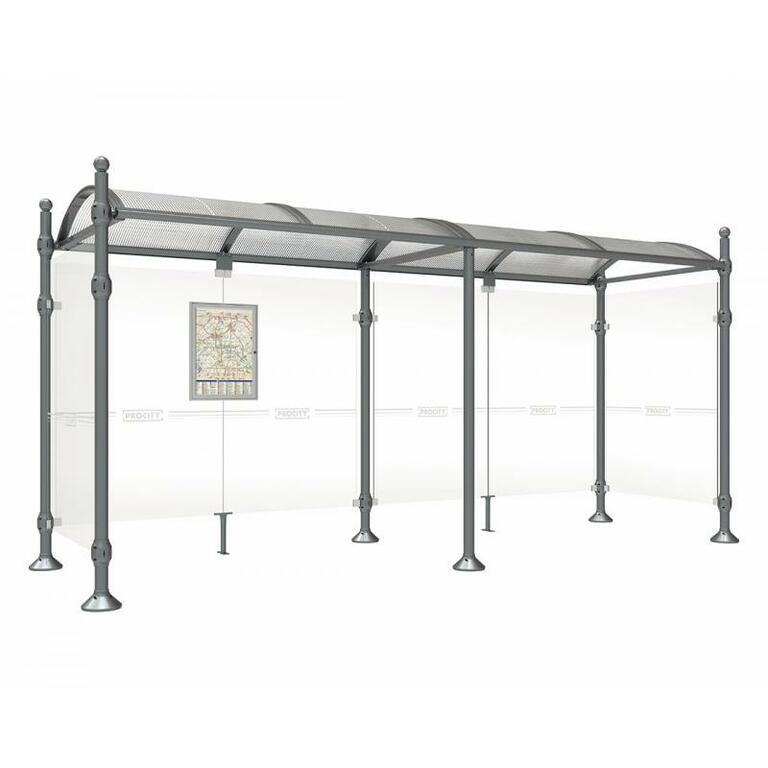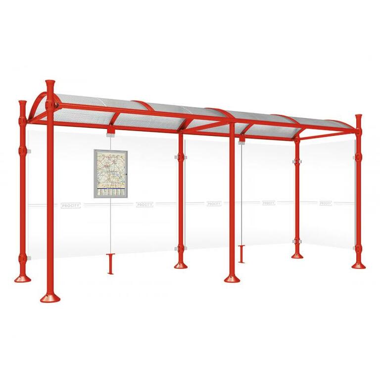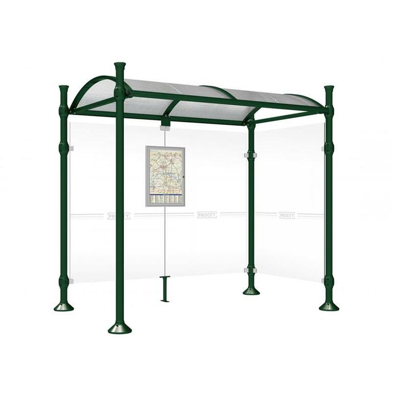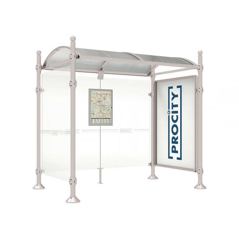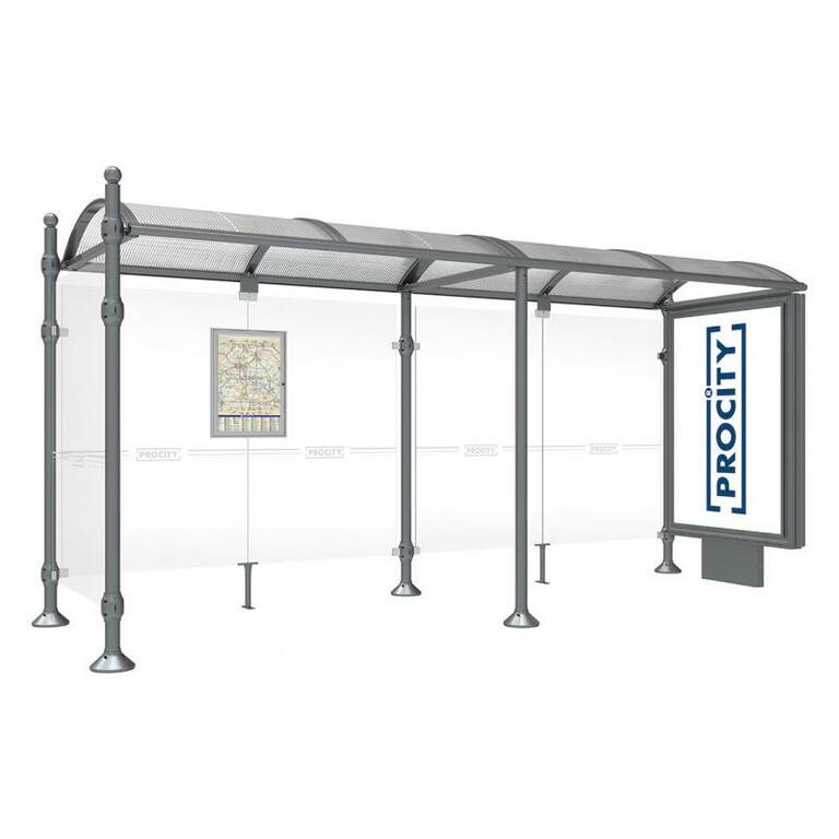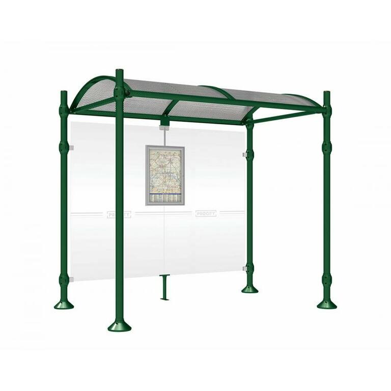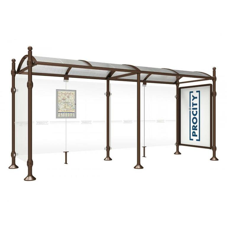 Die Bushaltestelle Province besticht durch ihre klare visuelle Identität, die sich durch vier Kopfmodelle sowie verschiedene Befestigungsschellen und Abdeckfüße auszeichnet. Sie bietet eine robuste Konstruktion aus Aluminium und Glas, mit einem gewölbten Polycarbonatdach und einer stabilen Rahmenstruktur. Die Haltestelle ist vielseitig anpassbar und bietet Platz für Fahrpläne sowie Werbung in einem Leuchtkasten oder einem Schaukasten.