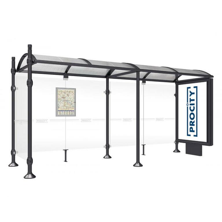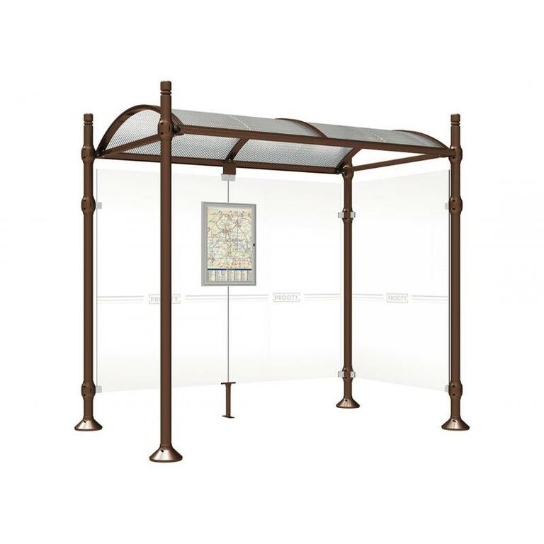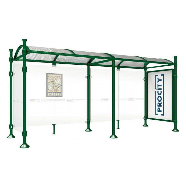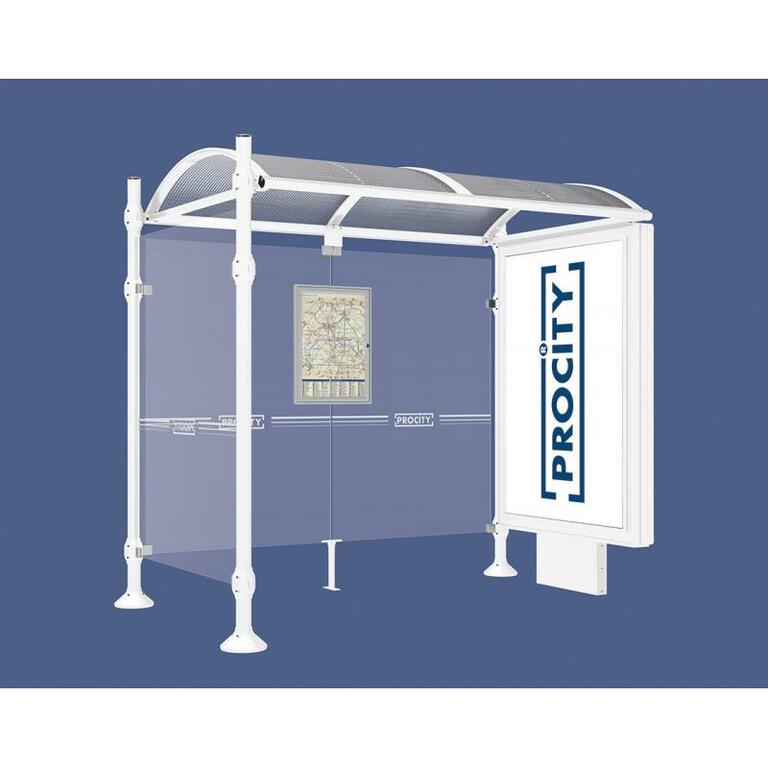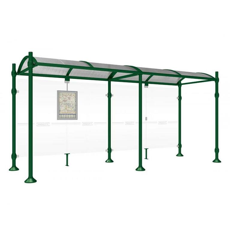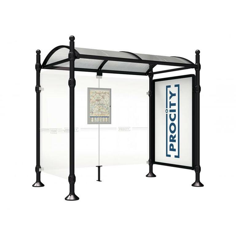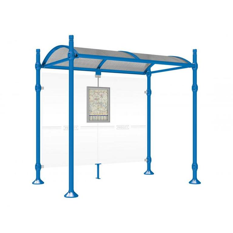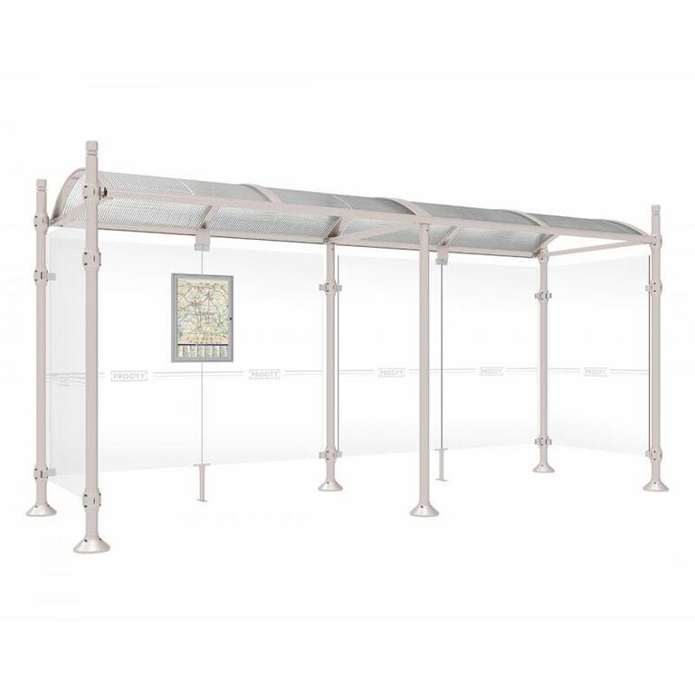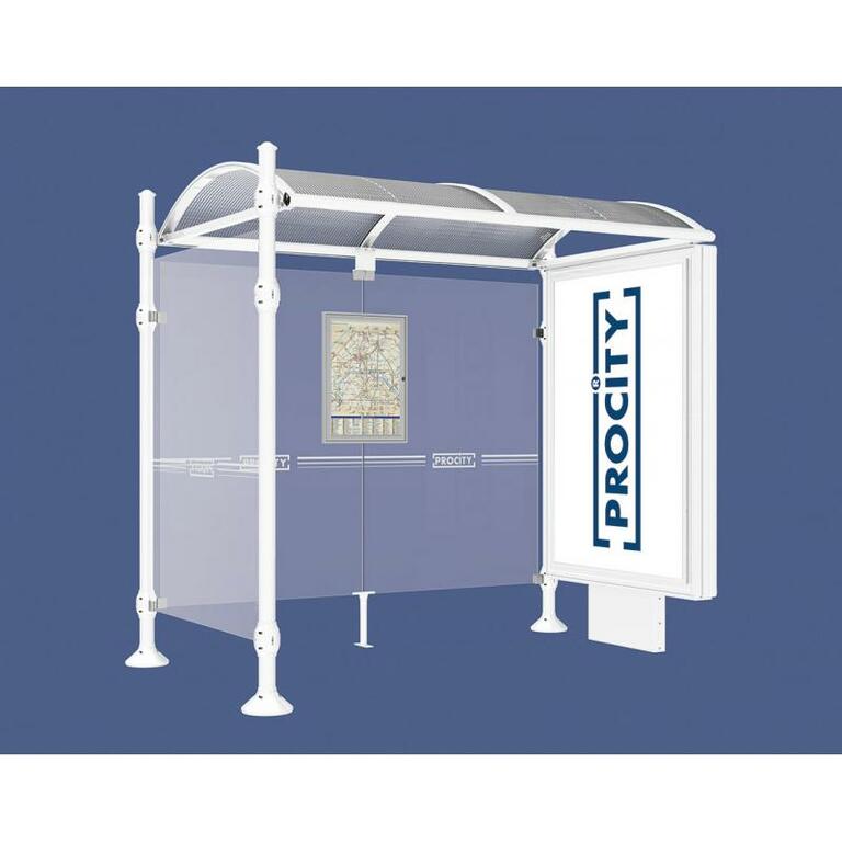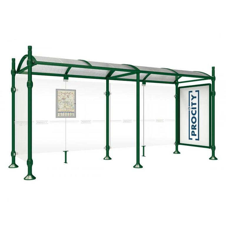 Die Bushaltestelle Province besticht durch ihre klare visuelle Identität, die sich durch vier Kopfmodelle sowie verschiedene Befestigungsschellen und Abdeckfüße auszeichnet. Sie bietet eine robuste Konstruktion aus Aluminium und Glas, mit einem gewölbten Polycarbonatdach und einer stabilen Rahmenstruktur. Die Haltestelle ist vielseitig anpassbar und bietet Platz für Fahrpläne sowie Werbung in einem Leuchtkasten oder einem Schaukasten.