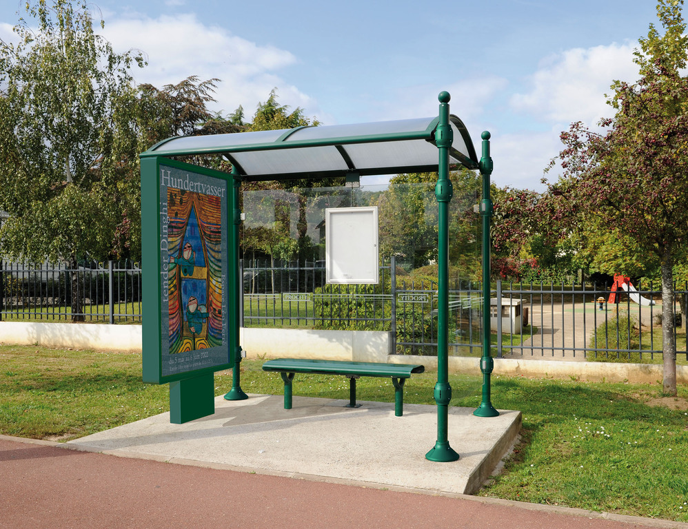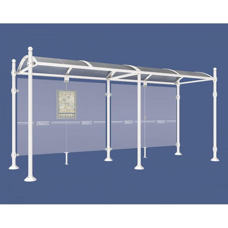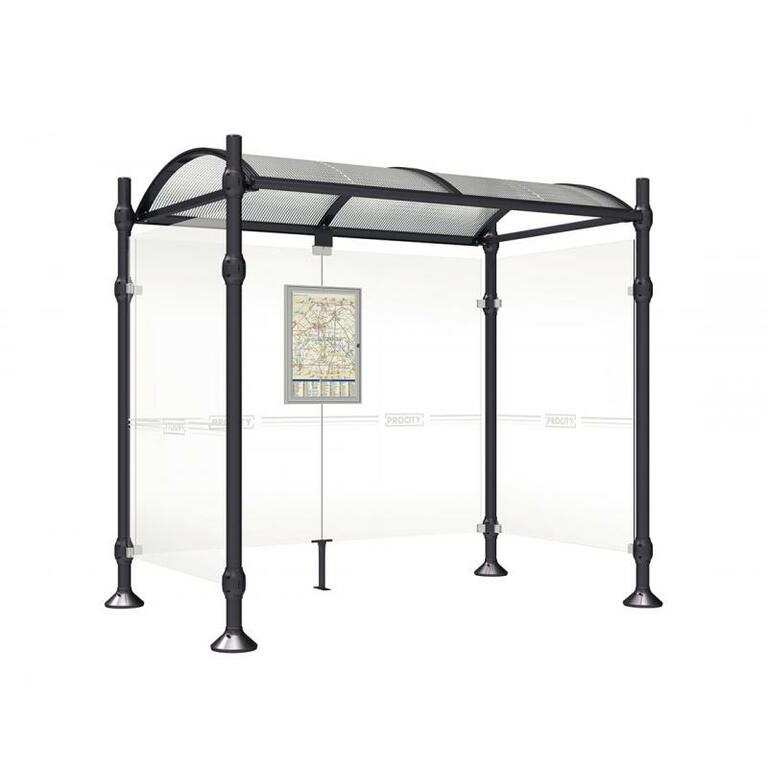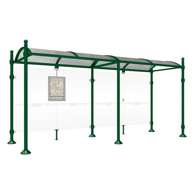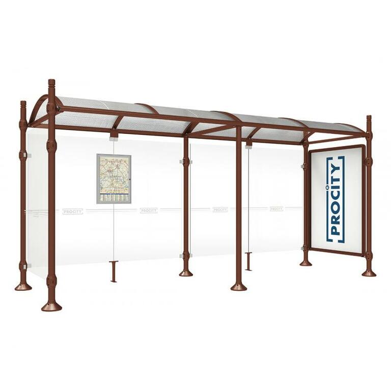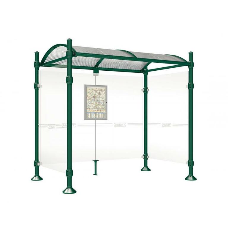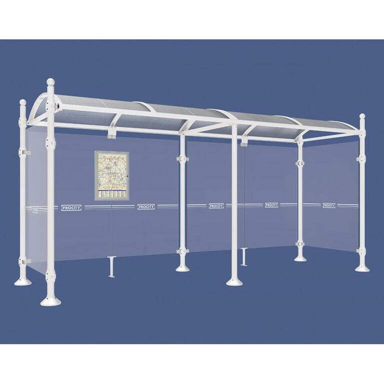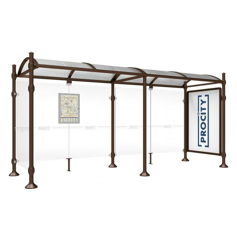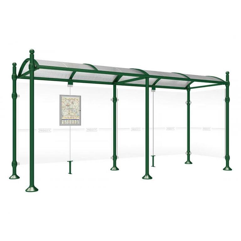 Die Bushaltestelle Province besticht durch ihre klare visuelle Identität, die sich durch vier Kopfmodelle sowie verschiedene Befestigungsschellen und Abdeckfüße auszeichnet. Sie bietet eine robuste Konstruktion aus Aluminium und Glas, mit einem gewölbten Polycarbonatdach und einer stabilen Rahmenstruktur. Die Haltestelle ist vielseitig anpassbar und bietet Platz für Fahrpläne sowie Werbung in einem Leuchtkasten oder einem Schaukasten.