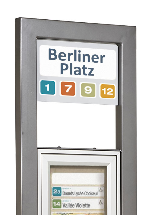 Dieses platzsparende Standschild ist ideal für schmale Bereiche und als Ergänzung von Bushaltestellen perfekt geeignet.
