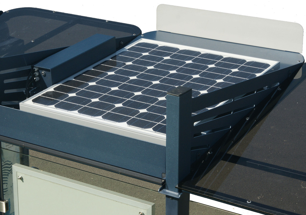 - Solarmodul: LED-Beleuchtung und USB-Anschluss mit Stromversorgung über ein diskretes Solarmodul auf dem Dach.