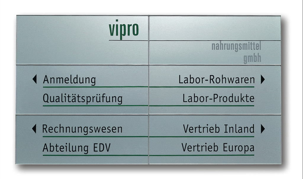Eine einheitliche und harmonische Gesamtbeschilderung wird in Kombination mit dem Türschild L, Funktionsschild L und Hängeschild L erzielt. Der Pylon L ist die ideale Ergänzung für den Außenbereich. Den passenden Bodenständer L und Prospektständer finden Sie ebenfalls in unserem Shop.