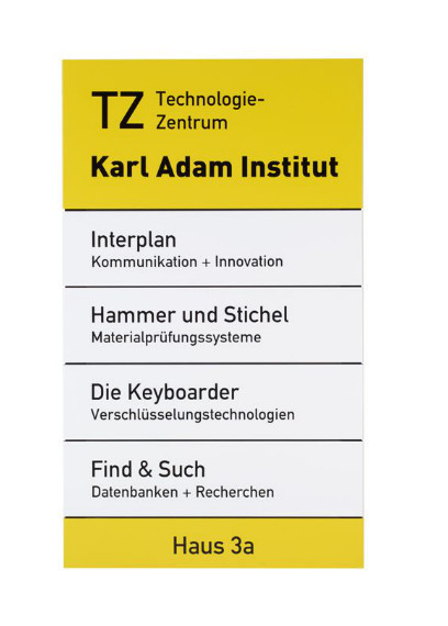 Das Wegweisersystem S überzeugt durch das einfache und zeitlose Design in klarer Formensprache. Ob mit einem oder mehreren Profilelmenten - die modulare Bauweise ermöglicht flexible und universelle Einsatzmöglichkeiten - ideal für eine individuelle Wegweiser-Gestaltung. Dabei werden die Segmente mit eleganten Schattenfugen optisch voneinander getrennt, wodurch der Wegweiser ein klar strukturiertes Erscheinungsbild erhält. Die Segmente werden auf die Grunplatte aufgeschoben und können dadurch ganz einfach ausgetauscht oder in der Reihenfolge verändert werden. Die Wegweiser S werden verdeckt an der Wand montiert oder mit Pfostenständern oder Bügelständern fest montiert.