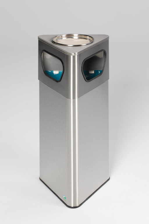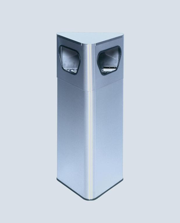 Abfallsammler - Kombi-Ascher - Wertstoffsammler. Gefertigt werden die Modelle aus Edelstahlblechen. Die Ausführungen V37, V40 und V47 sind ohne oder mit zwei Einwurfklappen lieferbar und können sowohl mit Kunststoffsäcken als auch mit Inneneinsätzen (aus verzinktem Stahlblech) ausgestattet werden. Ein einfaches und schnelleres Entleeren ist durch das abnehmbare Kopfteil gewährleistet. Die variablen Kombi-Ascher sind mit einem Edelstahl-Aschereinsatz (Sieb = VA) oder, der V40, mit einem Aschereinsatz aus Stahlblech, Alu-beschichtet (Sieb = VA) lieferbar. Einsetzbar als Einzelgerät oder Sammelstation, stationär oder fahrbar.