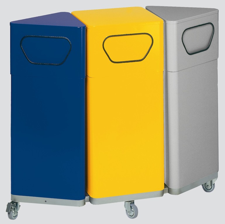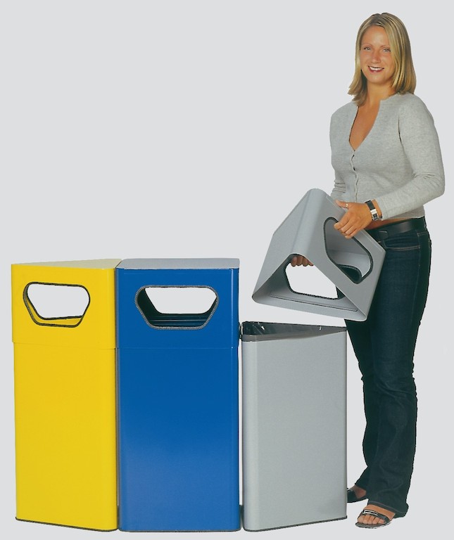 Abfallsammler - Kombi-Ascher - Wertstoffsammler. Gefertigt werden die Modelle aus verzinktem Stahlblech. Die Ausführungen V37, V40 und V47 sind ohne oder mit zwei Einwurfklappen lieferbar und können sowohl mit Kunststoffsäcken als auch mit Inneneinsätzen (aus verzinktem Stahlblech) ausgestattet werden. Ein einfaches und schnelleres Entleeren ist durch das abnehmbare Kopfteil gewährleistet. Die variablen Kombi-Ascher sind mit einem Edelstahl-Aschereinsatz (Sieb = VA) oder, der V40, mit einem Aschereinsatz aus Stahlblech, Alu beschichtet (Sieb = VA) lieferbar. Einsetzbar als Einzelgerät oder Sammelstation, stationär oder fahrbar.