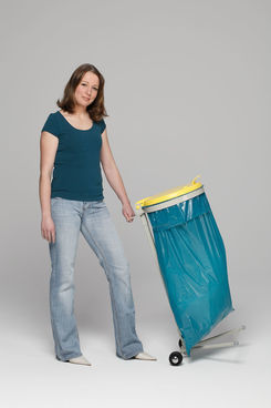 Die fahrbare Ausführung wird mit zwei Rollen geliefert. Praktischer Bügelgriff und Halterung, die ein Wegrutschen des Abfallsackes beim Verfahren des Gerätes verhindert. Lieferung zerlegt. Einfache Selbstmontage.