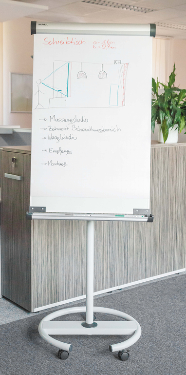 | Flipchart MAULpro, Rundfuß flip2use | Mobil | Rundfuß mit Rollen | 136 - 178; 148 - 190 | 0 | 16,5 | grau |