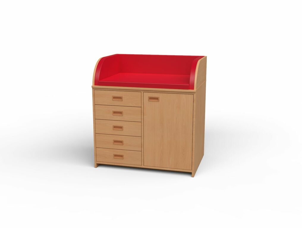 | 3-seitige Aufkantung offen | 1 Tür,2 Einlegeböden | 5 Schubkästen, Mittelwand | - | |||