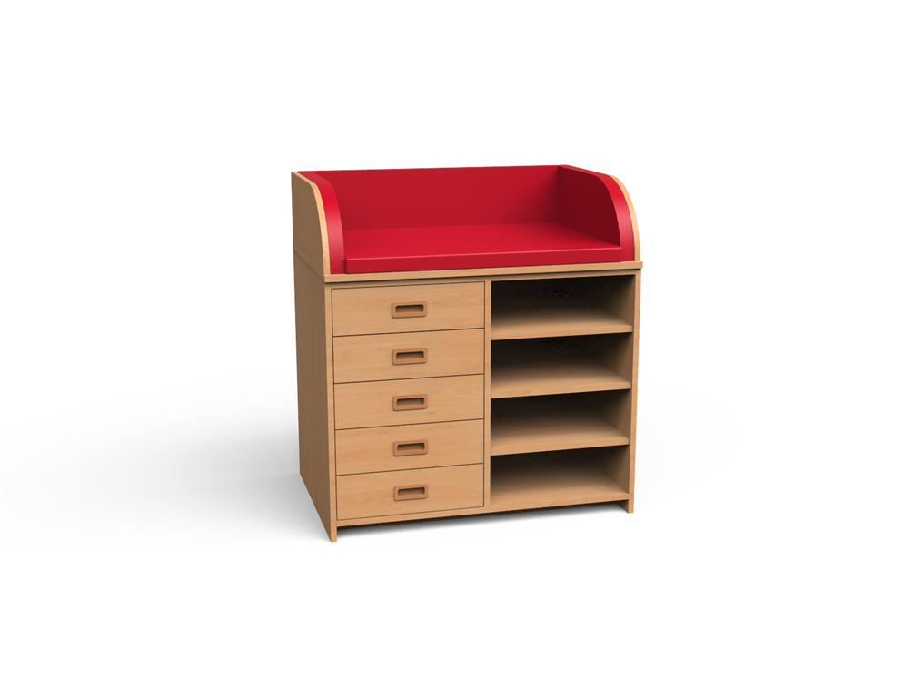 | 3-seitige Aufkantung offen | 5 Schubkästen | Offen 2 Einlegeböden | - | |||