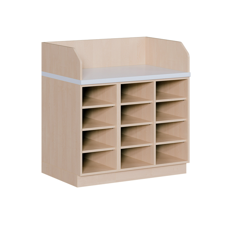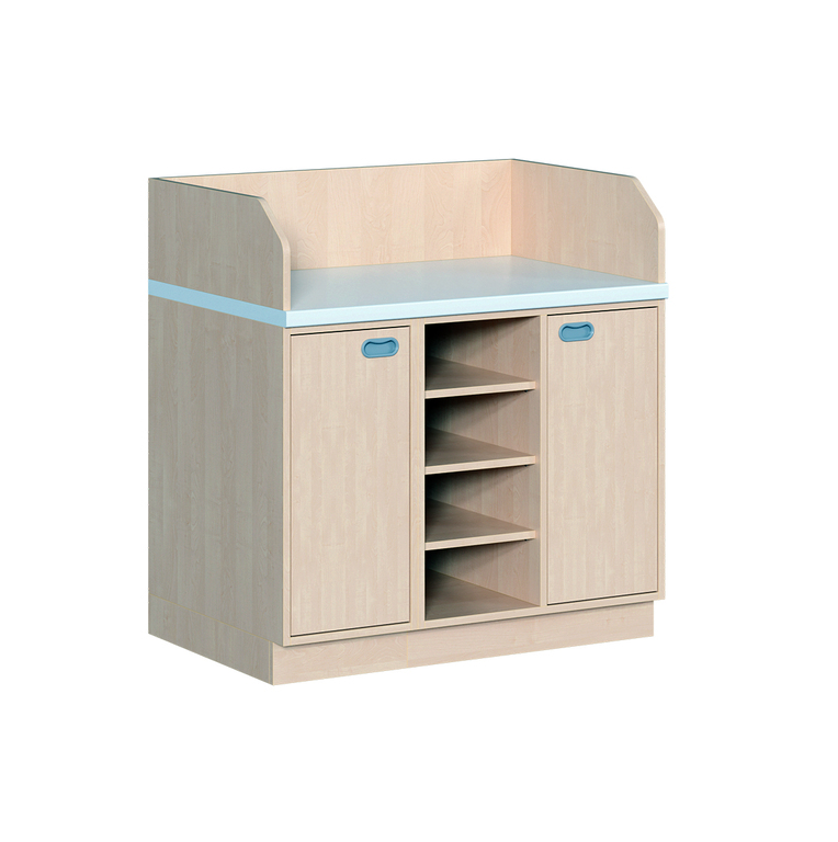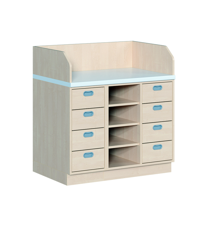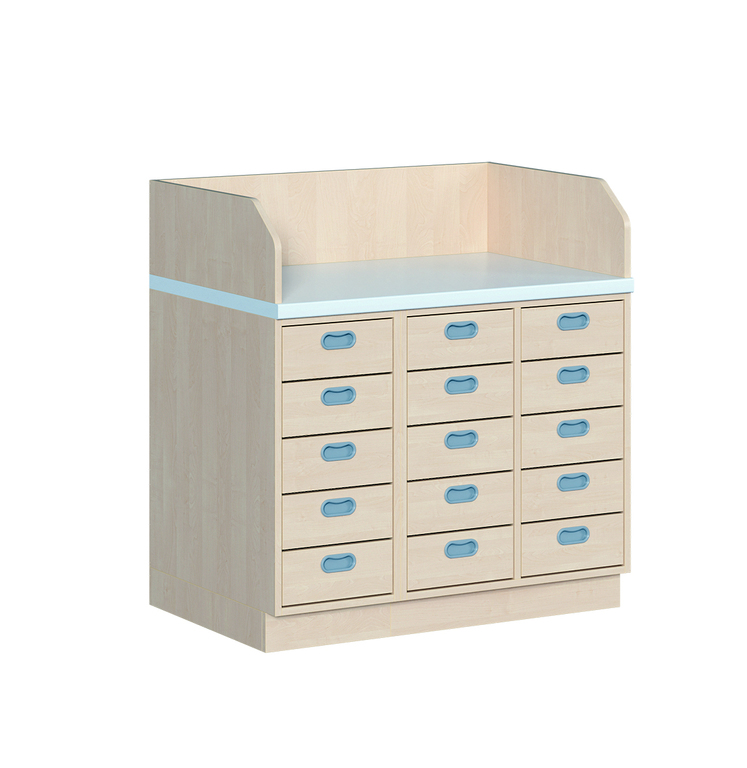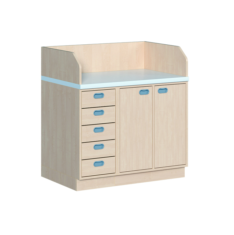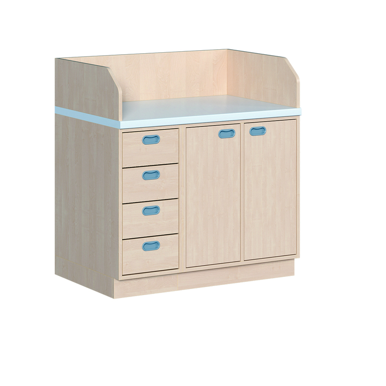 Unsere Wickelkommoden werden mit einer robusten Arbeitsplatte in weiß mit stark gerundeter Vorderkante gefertigt.