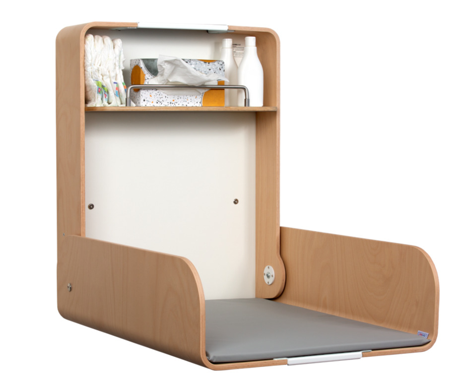 Der GS-zertifizierte Wandwickelplatz ist platzsparend und stabil.