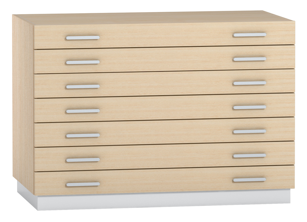 Der stabile Zeichnungsschrank ist für Papierformat DIN A0 ausgelegt.
