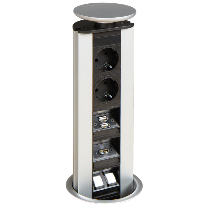 Versenkbare Steckdoseneinheit inklusive USB, HDMI und Netzwerk